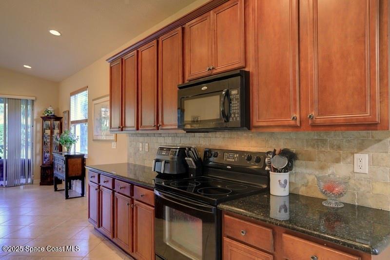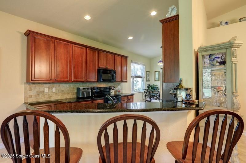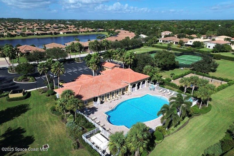 Custom 2006 CBS Mediterranean-style home with barrel tile roof, impact windows, and solar energy averaging $88/mo. Open 1,996 sq ft plan with cathedral ceilings, split bedrooms, tile in main living areas, remodeled guest bath, and a kitchen with 42'' cabinets and granite counters. Large screened porch overlooking private preserve. Fresh exterior paint. Gated community with low HOA fees that cover full lawn care, fitness center, heated pool, tennis/pickleball & more. Minutes to beaches, dining, and shopping.