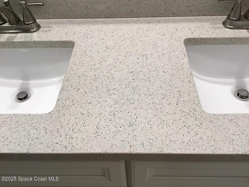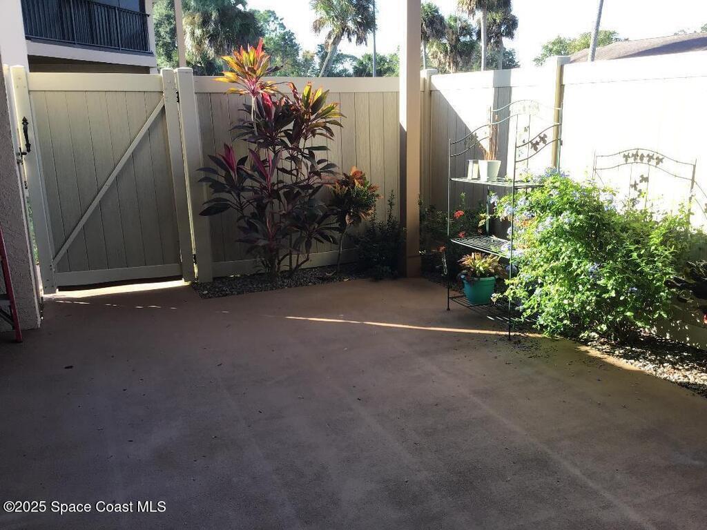 Location, location, location! Between southern Rockledge and northern Viera. Best elementary school district. Ease of access to major shopping including Viera Avenues. Ease of medical, VA, Viera Hospital. Convenient to I-95, yet quiet & secluded. 15'' to beaches. Very nice condo with updated kitchen and baths. Beautiful kitchen granite and solid surface Silestone in bathroom. Laminate plank flooring downstairs, carpeting upstairs. Bathroom vanity has double bowls and each bedroom has a wall of closets. This unit has an awesome private courtyard and a large upstairs porch accessible from each bedrm. The building is a quadplex - (4) two story corner units in one building. Block & firewalls between each unit. Community has one private road in and out. (2) Assigned parking spaces in front + open guest parking. Gorgeous community pool and clubhouse with sauna. New roof 2019. Homesteaded taxes 2025 $1,012.36. VA and FHA financing available.