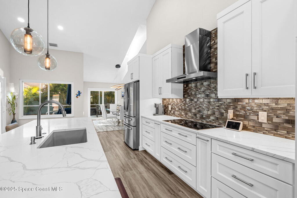Fresh upgrades shape a home that feels effortlessly dialed-in, where every space has been improved with purpose & every major system has already been handled for you. A brand-new light grey flat tile roof will be in place before closing, joining a long list of recent improvements including a 2024 AC, 2025 water heater w/ recirculating pump, impact windows, doors & skylight, a 2023 garage door, updated 2023 pool pump, refreshed 2025 screen enclosure, & a sprinkler system with a 2024 pump. Inside, the 2020 renovation delivers a smart, modern style with quartz counters, soft-close cabinetry, induction cooking, double convection ovens, stainless Samsung appliances, wide-plank LVP flooring, recessed lighting, new kitchen pendants, a generous walk-in pantry, upgraded baths, & textured knock-down ceilings.