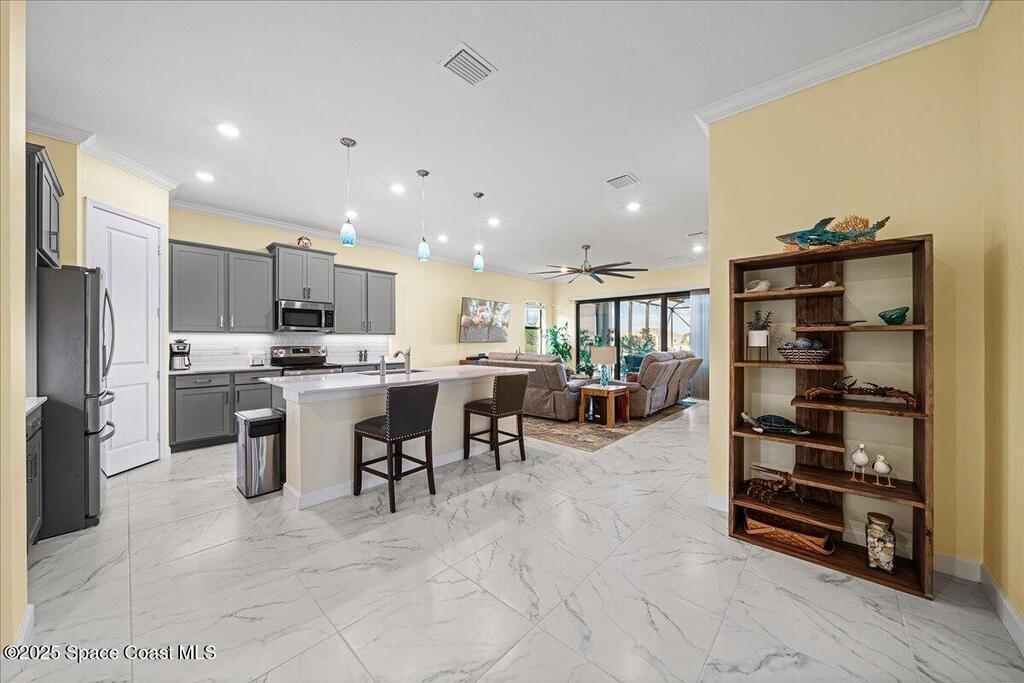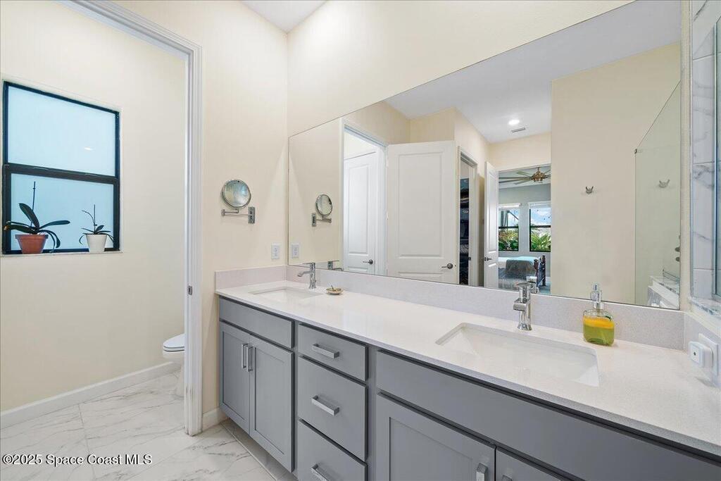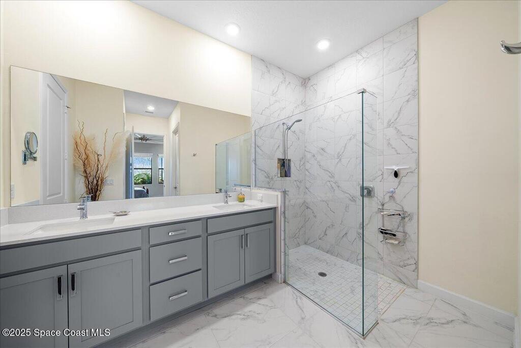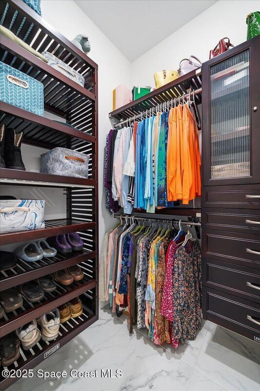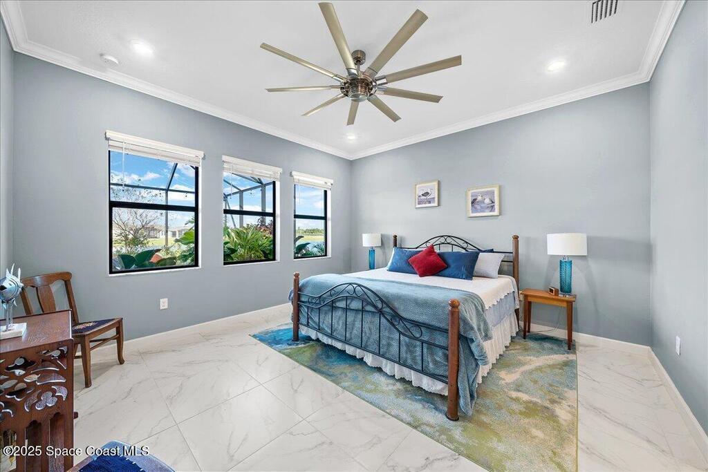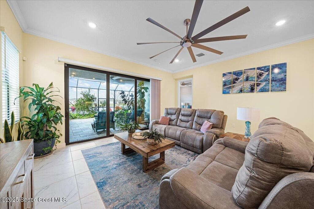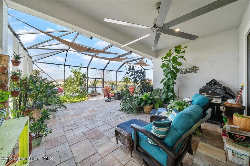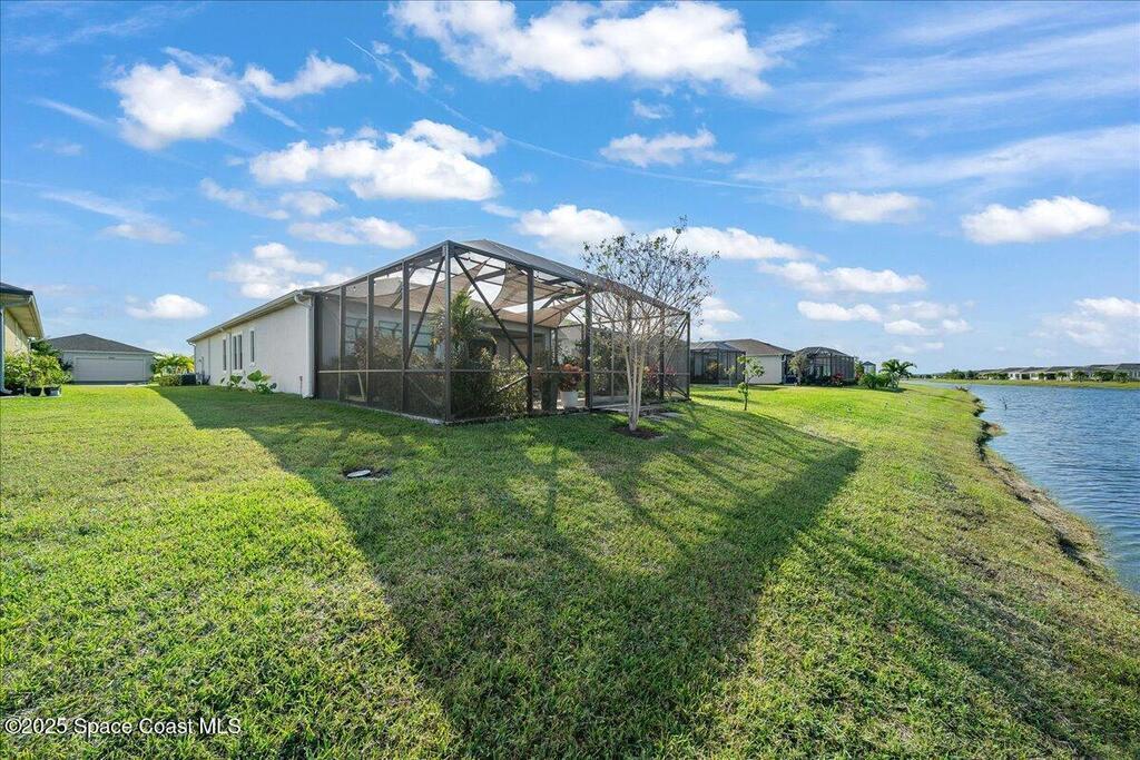 Looking for privacy and one of the best views in Bridgewater at Viera? You've found it. This home sits on the wide part of the lake and faces more green space than most lots. It also features the largest lanai in the entire community, creating a peaceful, expansive outdoor oasis perfect for plant lovers and anyone who enjoys relaxing in a spacious patio setting. The layout offers generous room to host guests, with upgraded kitchen features including wood slide-outs in every lower cabinet and wood shelving with pullouts in the pantry. The primary suite includes a double vanity, tiled shower, and two walk-in closets--one upgraded with built-ins. Additionally, there are IMPACT WINDOWS, an expanded driveway and epoxy floors in the garage. Located in a vibrant 55+ community, you'll also enjoy resort-style amenities like a luxurious clubhouse, oversized pool, fitness center, tennis & pickleball, and a full calendar of activities designed for connection and quality of life.