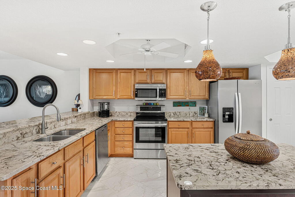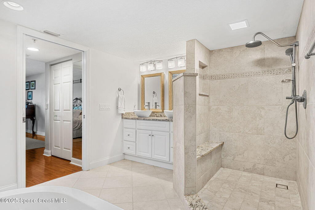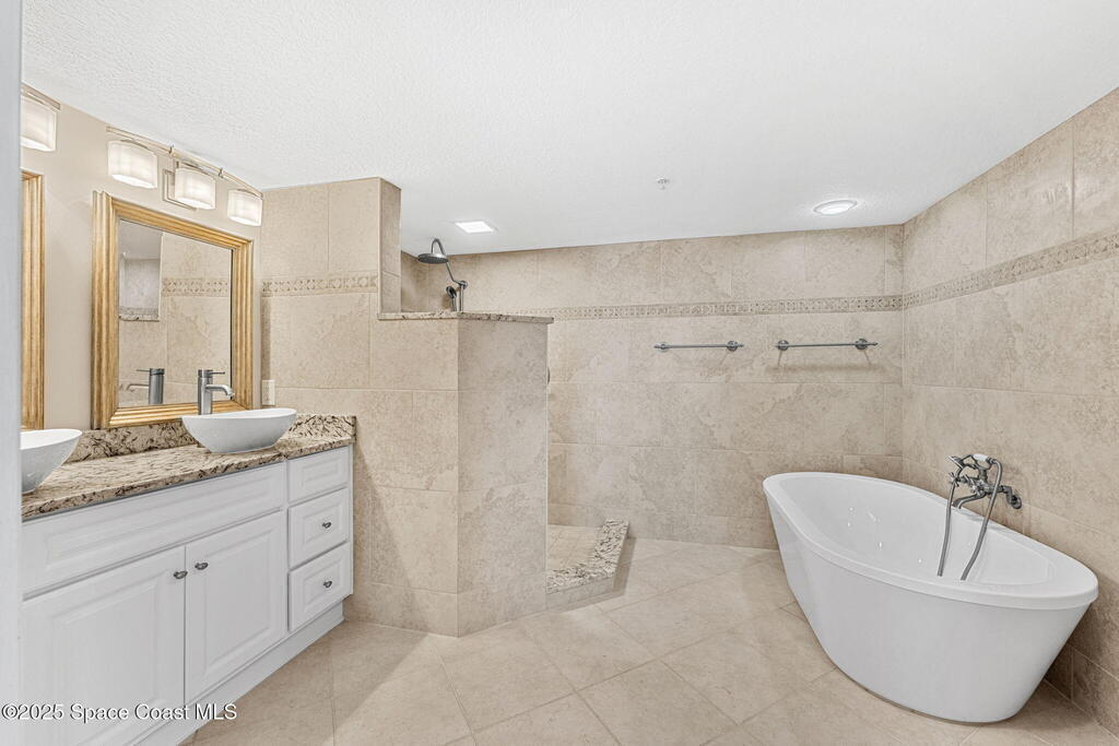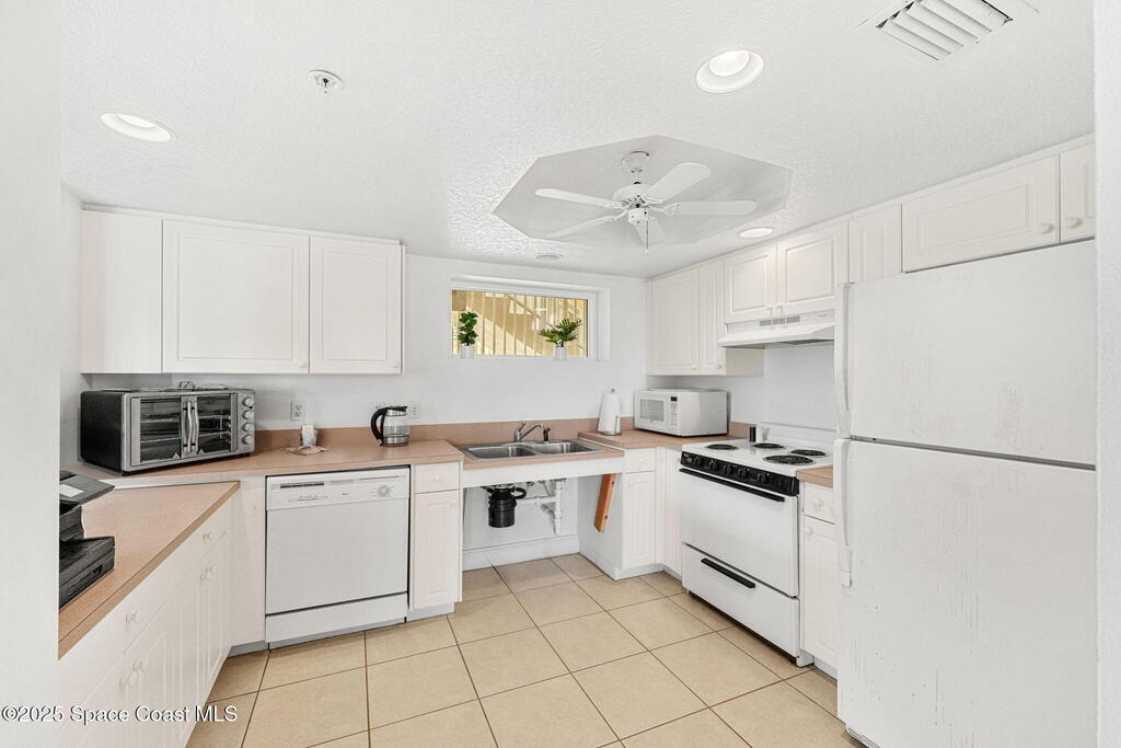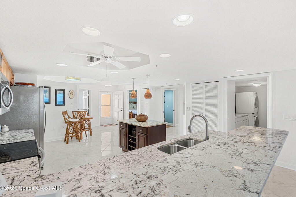 Step into sweeping Atlantic Ocean views the moment you enter this direct oceanfront condo on Florida's Space Coast. This three-bed, two-bath residence offers secured elevator access, a private one-car garage, and additional guest parking. An oversized balcony with storm shutters and impact-rated turtle glass sliders frames the shoreline. The remodeled kitchen showcases elegant granite, a breakfast bar, wine bar, and stainless appliances. French doors open to a flexible third bedroom or office. The primary suite includes a large walk-in shower, soaking tub, and double sinks, while the guest room features an en suite bath with dual access. Wood and marble-look tile floors run throughout. Amenities include private beach access, a heated pool, fitness center, and clubhouse. Two pets up to 35 lbs and 6-month rentals allowed. Recent building updates and all past assessments paid in full. Walkable to dining and all that Indian Harbour offers--true beachside living.