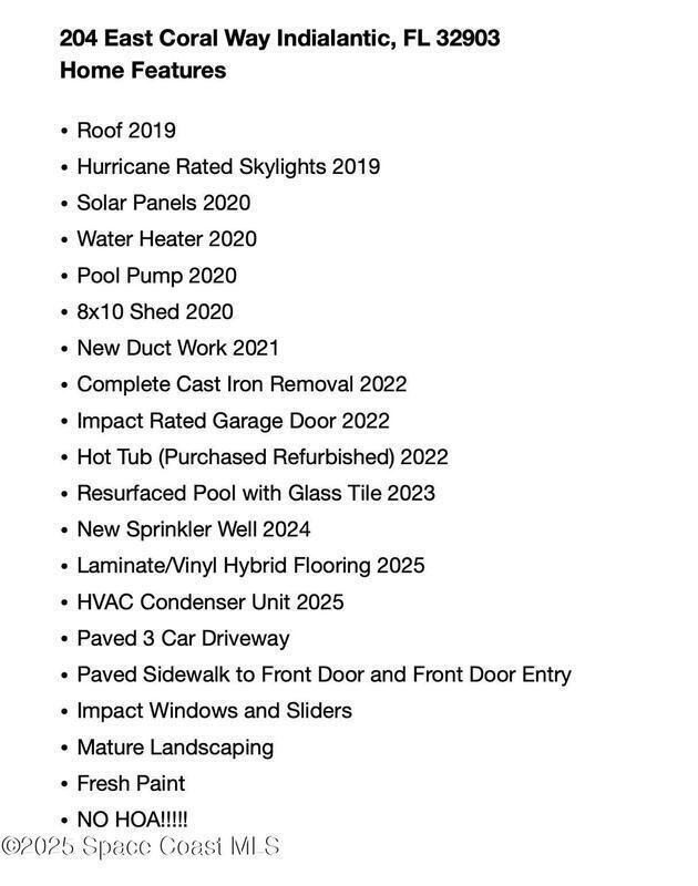 This well-maintained and thoughtfully updated 4-bedroom, 2-bath residence is situated on a desirable corner lot in a sought-after beachside community. The property features a spacious open floor plan with abundant natural light, complemented by fresh interior paint and new flooring throughout. The updated kitchen offers excellent functionality and flows seamlessly into the adjoining living and dining areas, creating an ideal setting for everyday living and entertaining.The outdoor living space includes a resurfaced in-ground pool, a relaxing hot tub, and ample deck and patio areas suitable for gatherings or quiet enjoyment. Solar panels contribute to reduced energy costs and enhanced efficiency.This home has been updated throughout and is move-in ready. Located just moments from the beach, shopping, dining, and recreational amenities, this residence offers an exceptional opportunity to enjoy comfortable coastal living in a prime location -- and best of all, there is no HOA.