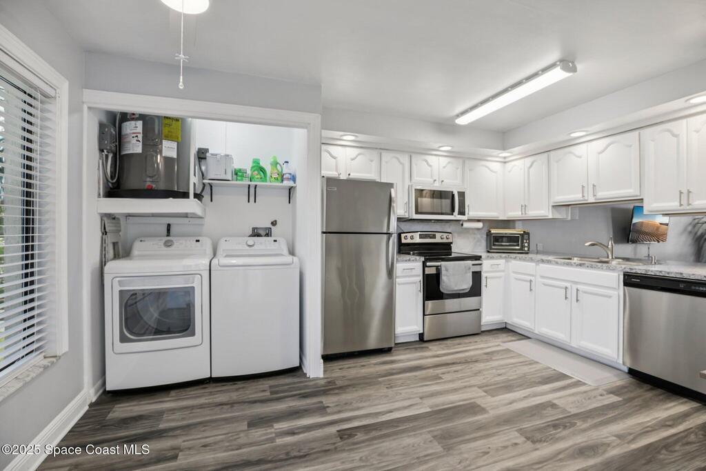 Use our preferred lender, Rocket Mortgage, and receive up to $6,000 toward your closing cost!!! This beautiful remodeled 2 bedroom, 1 bath condo on the 3rd floor comes partially furnished and offers modern living in a prime location. Enjoy updated LVP flooring throughout, a fully renovated bathroom, fresh paint, newer washer and dryer, and an upgraded kitchen with contemporary finishes. The community pool is within easy reach of your unit, with tennis courts nearby and private river access perfect for paddleboards, kayaks, and canoes - complete with convenient storage racks. Move-in-ready and loaded with lifestyle amenities, this condo is the perfect blend of comfort, style and coastal living!!!