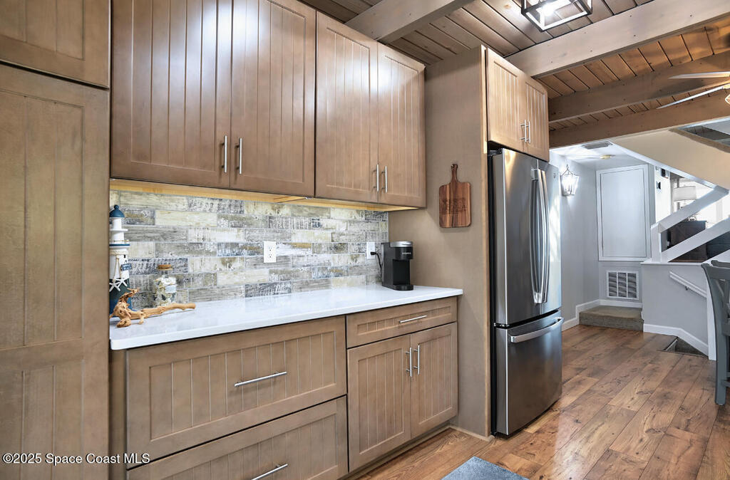 COMPLETELY REMODELED OCEANFRONT TOWNHOME STYLE RETREAT IN THE HEART OF MELBOURNE BEACH.SWEEPING OCEAN VIEWS FROM EVERY ROOM AND NIGHTLY RENTALS ALLOWED. One of the very few oceanfront communities that allows nightly rentals along the Space Coast. Air B n B your second home and create solid income stream. ENTIRE UNIT RENOVATED IN 2024 to include a completely new kitchen with soft close Kraft maid cabinetry, expansive pantry and all new S/S appliances. BRAND NEW A/C INSIDE AND OUT JULY 2023. All new floors throughout, renovated bathrooms and all new lights/fans + window treatments. Wired for electric car plug-in. Updated electrical panel and wired for electric house generator. 2 dogs allowed/no limit on weight. Complex had new tile roofs installed in 2015. Both beach crossovers rebuilt 2022 w/ composite wood. Good sized bedroom and updated bath on the 1st floor with slider opening right to beach! Primary suite has his and her closets and the bathroom has been updated beautifully.