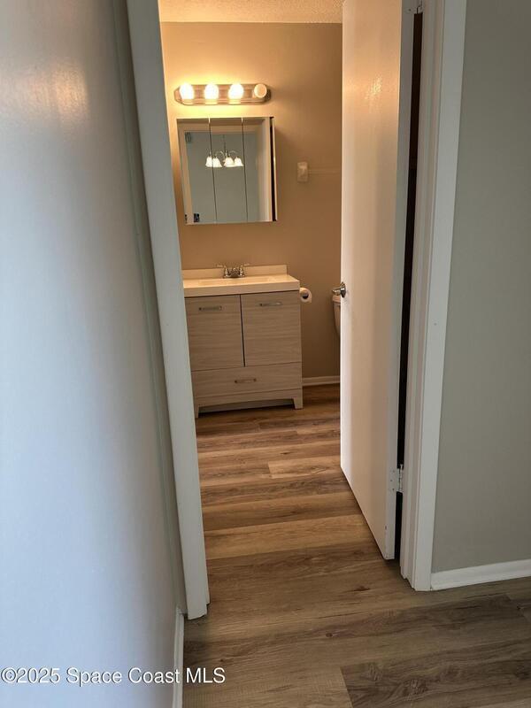 Come make yourself at home in this cozy duplex featuring two master suites. This open-concept floor plan is perfect for entertaining family and friends. The back porch offers a view of the pool and is equipped with hurricane shutters and an impact-resistant sliding door for your peace of mind.Enjoy the perfect location with just a short drive over the bridge to the beach, plus close proximity to excellent shopping and dining options. The property has been freshly painted inside and out, move-in ready for you!