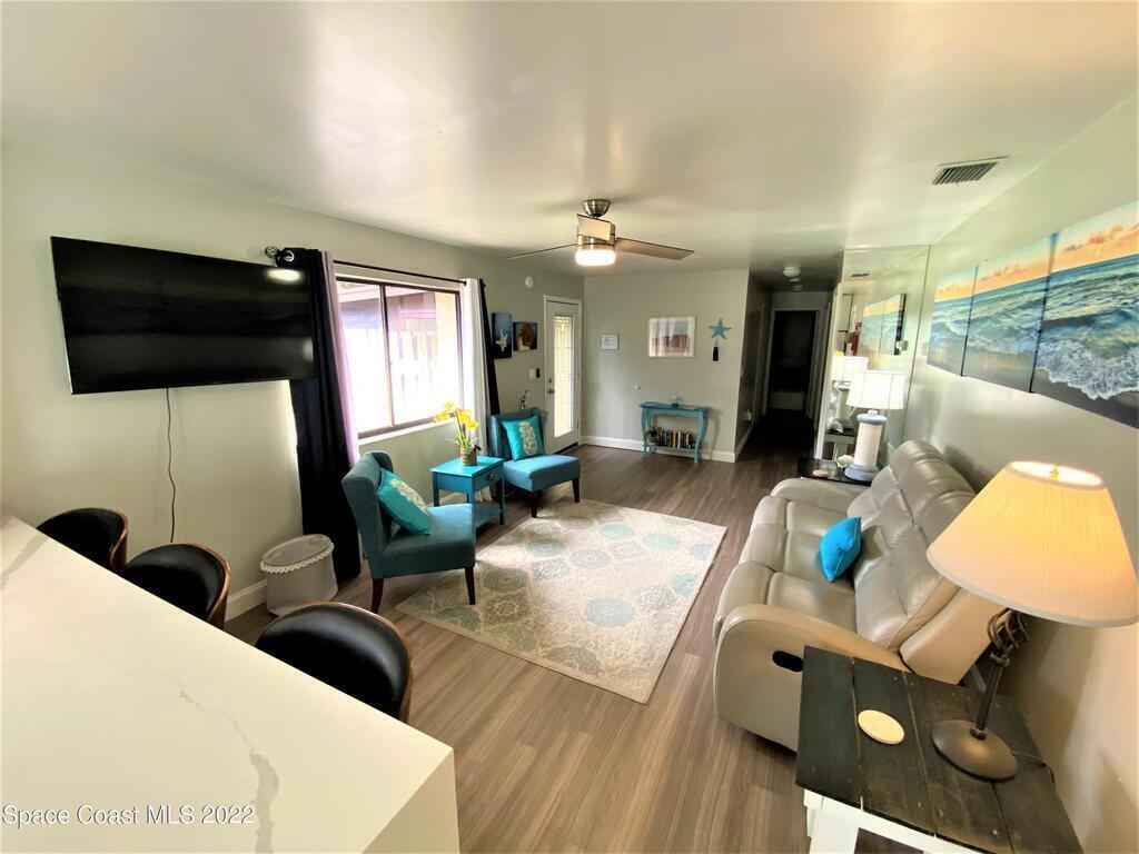 Newly renovated fully furnished 3 bedroom 2 bathroom detached home in Cape Canaveral with walking distance to the beach. Spacious and private fenced yard with enclosed, screen room and an attached garage. Waterproof, vinyl plank flooring throughout. The kitchen boasts updated, soft close cabinets with pull out drawers, stainless steel appliances, and quartz counter tops.Ocean Woods community offers 2 pools, tennis courts and a rec center. Close to restaurants, shopping, and the Port!