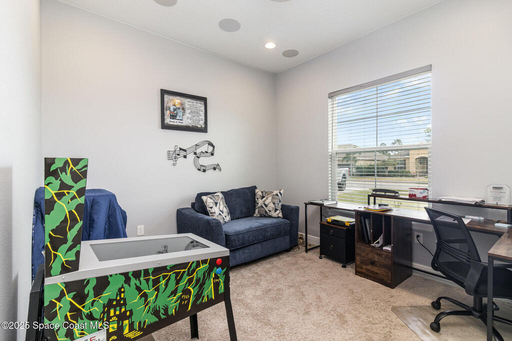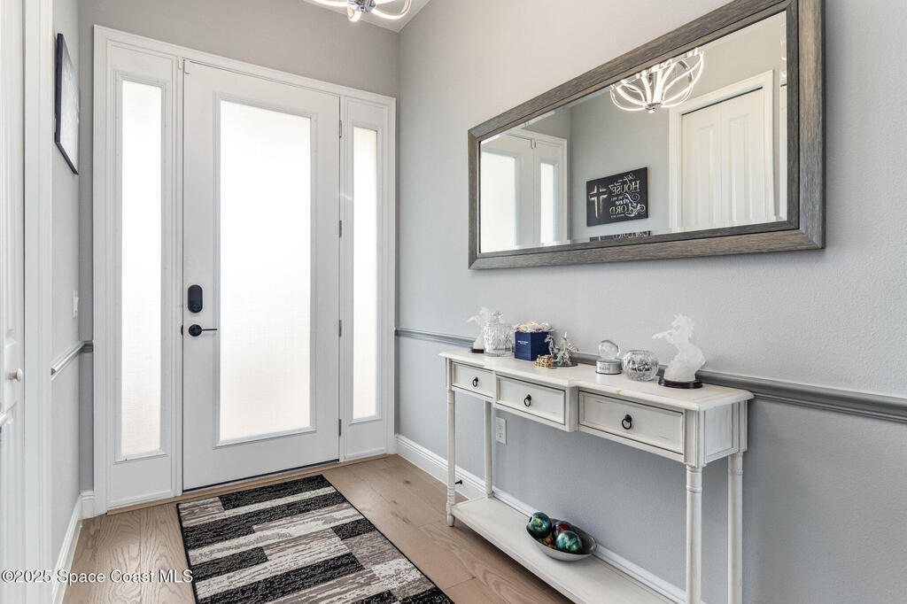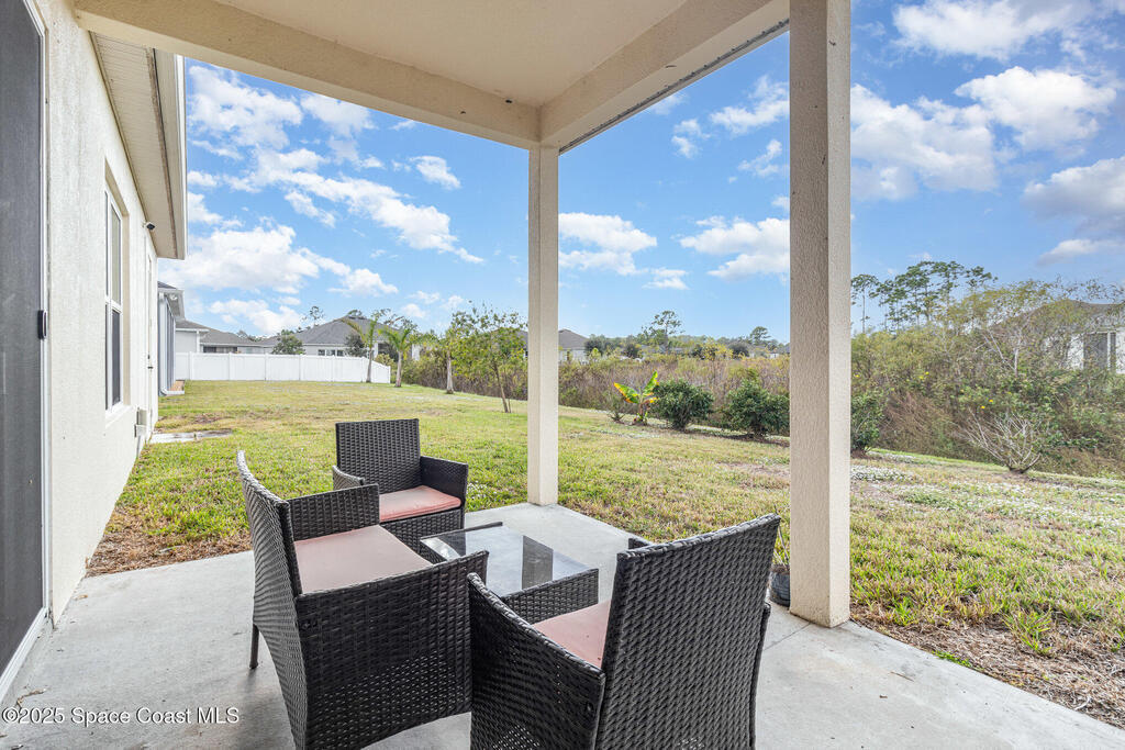 Discover this spacious, nearly new 2023 home located in one of Titusville's desirable newer communities. This beautifully designed 4-bedroom, 3-bath home features a GOURMET CHEF'S KITCHEN equipped with an induction cooktop, convection oven and microwave, modern cabinetry, & large center island perfect for cooking and entertaining. Enjoy premium upgrades such as built-in surround sound (indoors and on the patio), high-end security system, custom light fixtures, high-end LVP flooring, and upgraded tile throughout and a custom primary closet. Motion-sensor lighting enhances both the laundry room and pantry for added convenience. The garage includes an ELECTRIC VEHICLE CHARGING PORT, making this home future-ready. The already-installed pervious paverspave the way to putting in pool. This fantastic location offers quick access to I-95, Kennedy Space Center, SpaceX, Blue Origin, space industry, and is just minutes from beaches, local shopping, restaurants, and beautiful Fox Lake Park.