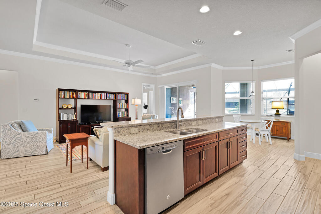 Beautifully upgraded LifeStyle Home in gated Huntington Place! This 4-bed, 2.5-bath SunSmart home offers open layout with tray-ceiling great room, granite kitchen w/ island, and a spacious primary suite w/ dual walk-in closets and spa-like bath. Energy-efficient LifeStyle Home w/ solar panels that help keep monthly electric bills low. Enjoy peaceful pond views from your private, fully fenced yard w/ screened heated saltwater pool. Accordion shutters, low HOA, and clubhouse w/ pool and fitness room. Conveniently located near beaches, dining, and shopping -- enjoy the best of Vero Beach living!