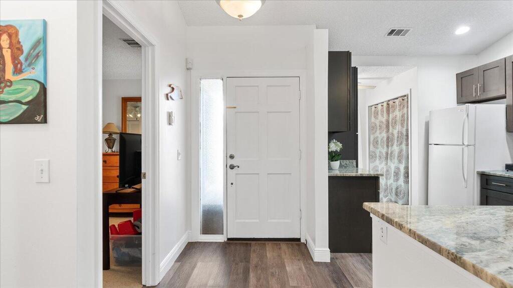 Winter Retreat/Investment/Melbourne Beach vacation home-Turn Key! Great community Low HOA dues only 1M Rental restriction!*1% LENDER CREDIT & FREE APPRAISAL offered w/our preferred lender* Make Mel Beach Home or a winter getaway, this ocean to river villa shows FL Lifestyle at its best. Situated on a corner lot, this 1 story end unit villa offers a recently remodeled 2B/2b 1 CG floor plan! Gorgeous open concept kitchen w/granite counters & Shaker style cabinets. Large great room w/tons of natural light. LVP flooring runs thru out main living areas & Baths for contemporary look. Primary bedroom fits a king bed & has walk in closet. Primary bath is all new w/fully tiled shower, new cabinet & granite counter. Guest room has access to remodeled guest bath! Enjoy private screened back patio over looking garden like setting. Easy walk to Olympic sized heated pool w/comm area, boardwalk to the Indian River, private beach access, Fishing pier, kayak/sup dock, boat storage, Tennis & Playground