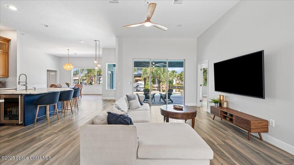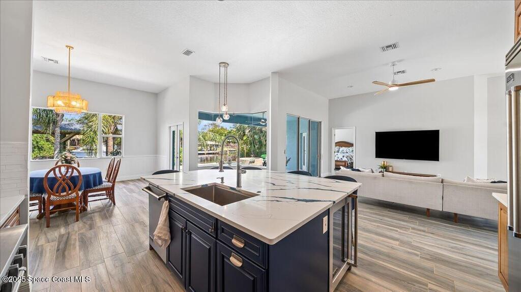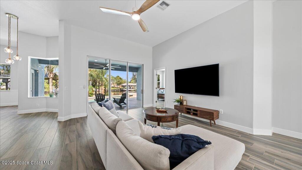 Endless Summer! Feel like you're on a permanent vacation in this vibrant coastal paradise. Perfectly located in a friendly neighborhood walkable to restaurants, shops, nightlife, and the beach, this home delivers soaring ceilings, a bright open floor plan, granite countertops, high-end appliances, and brand-new sliding glass doors that bring the sunshine in.With 5 bedrooms, 4 bathrooms, and two laundry areas, there's room for everyone to relax in style. Step outside to your private resort-style oasis featuring a covered patio, sparkling pool, and soothing spa. Stroll out back to the covered dock with boat lift and head straight onto the water for sunset cruises.A newer metal roof and updated HVAC provide peace of mind. Fun, luxurious, and effortlessly coastal--this home truly has it all.