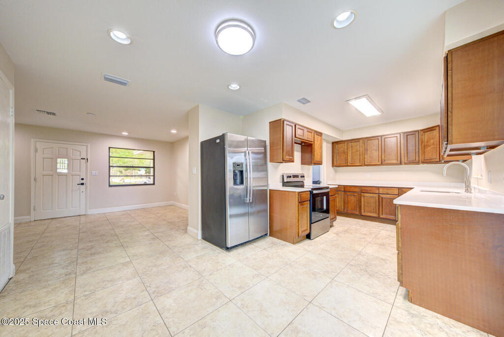 Perfect cottage for a Florida escape, this beautifully updated 4-bedroom, 2-bath home offers comfort, style, and convenience. Enjoy tile flooring in the main living areas with new carpet in the bedrooms, plus a remodeled kitchen featuring quartz countertops, a deep stainless steal sink, new appliances, and refreshed bathrooms. Extra roomy laundry room for additional storage. Fresh interior and exterior paint give the home a crisp, modern feel. The covered carport includes an additional parking area, and the large fully fenced backyard provides plenty of space for outdoor enjoyment and an over-sized screened in patio. Major upgrades include a 2021 roof, 2024 HVAC with new ductwork, PEX plumbing throughout, a gas water heater, hurricane shutters and updated lighting. Ideally located near Melbourne Airport, US-1, I-95, and Wickham Road, this home combines charm, quality, and excellent access to everything the area offers.