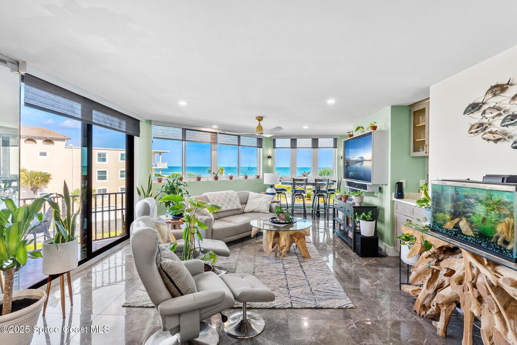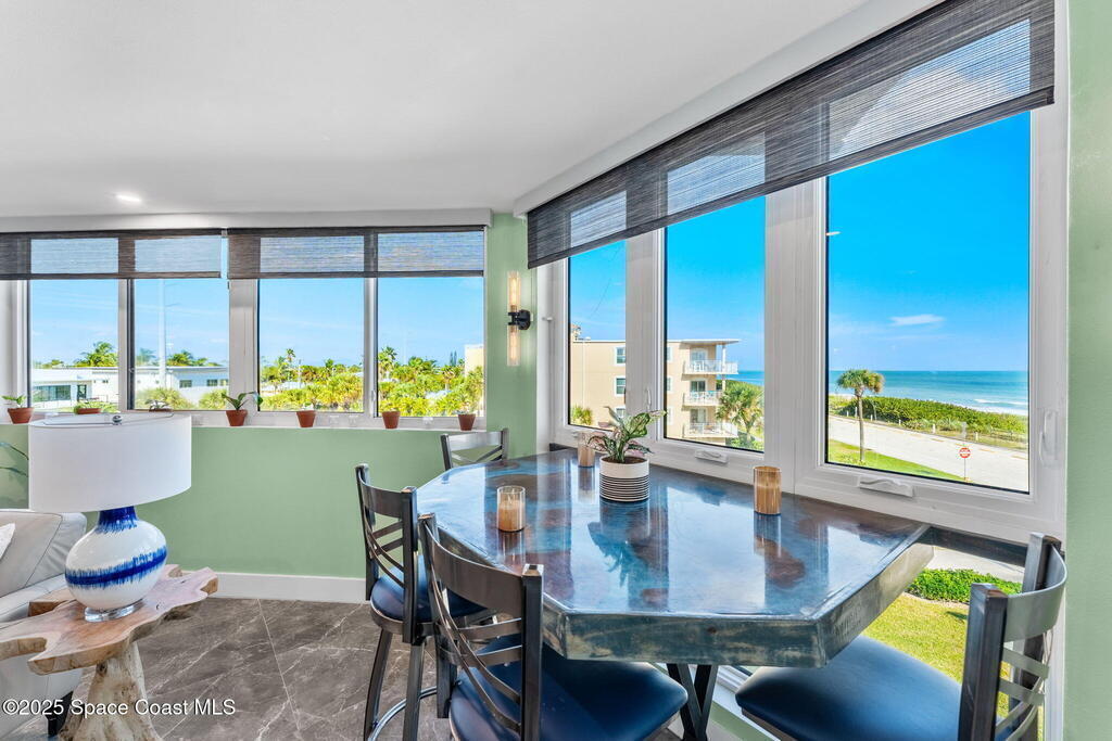 OCEANFRONT END UNIT WRAPAROUND CONDO- Stunning and fully updated 3 bedroom, 2 bathroom, oceanfront end-unit condo with panoramic ocean views through hurricane-impact windows and sliders. Comes with 2 parking spaces with an enclosed private 1 car garage. Included are 2 balconies with ocean views and a west-facing balcony for sunsets and wraparound natural light. High-end finishes throughout, beautiful tile floors, updated kitchen, spacious walk-in closet, and ocean views from the primary bedroom. Laundry in unit. The building recently completed major restorations with all assessments paid in full.Located in highly desirable Indialantic, south of 5th Ave, near top destinations: Melbourne Orlando Intl Airport, Orlando Intl Airport, Kennedy Space Center, Cocoa Beach, Sebastian Inlet, Vero, Viera, Brevard Zoo, Disney/Universal, and Port Canaveral.