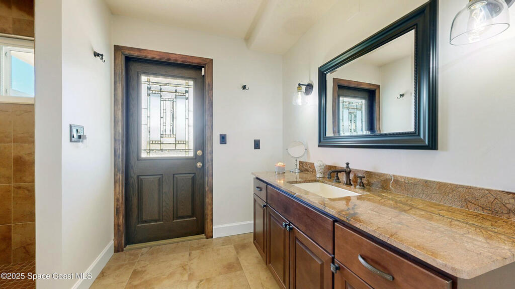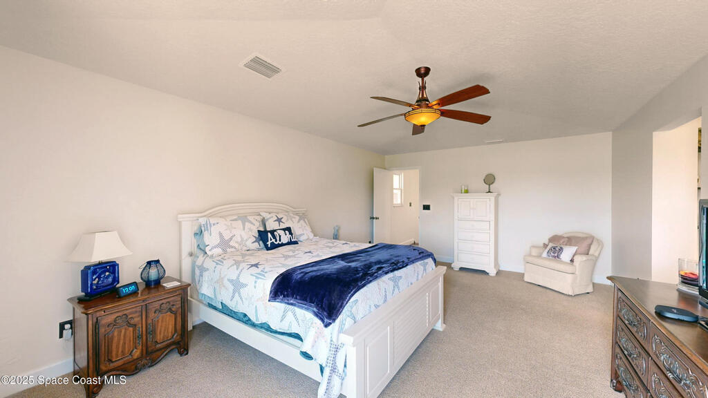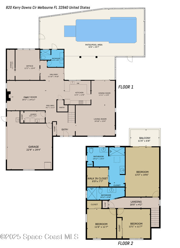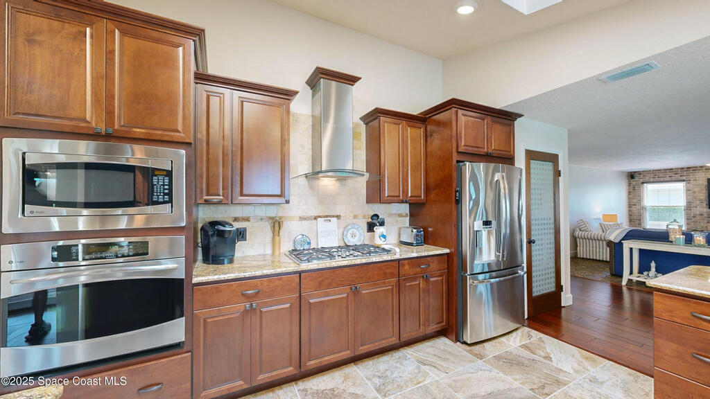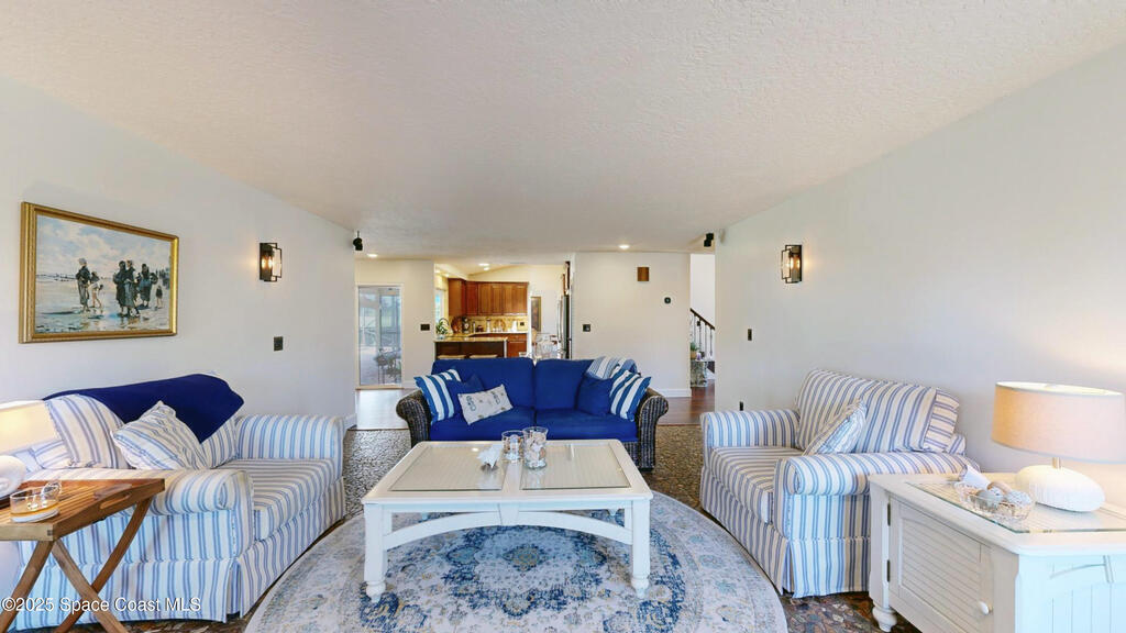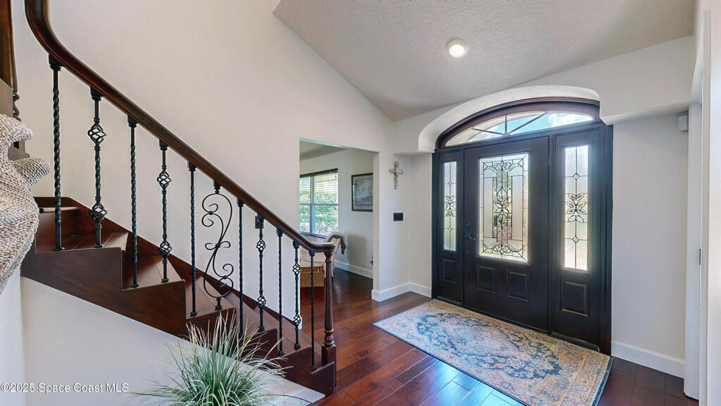 Beautifully situated on the #3 Challenge Course at Suntree Golf Club, this updated pool home offers over 3,000 sq. ft. of living space with exceptional golf course views. The home features a 2023 A/C system, 2021 roof, and 40 solar panels for added energy efficiency(paid off). The kitchen includes cathedral ceilings, granite countertops, stainless steel appliances, a gas range, hammered copper farmhouse sink, and pantry. Additional highlights include skylights,cherry- wood flooring, and a family room with a brick fireplace(wood burning can covert back to gas). The screened, gas-heated salt water pool and spa, along with the covered patio, provide an ideal setting for year-round enjoyment. The upstairs primary suite features a private balcony with sunrise and sunset views! Conveniently located near schools, shopping, dining, and medical facilities.