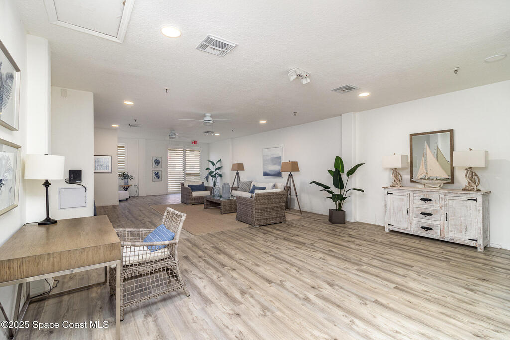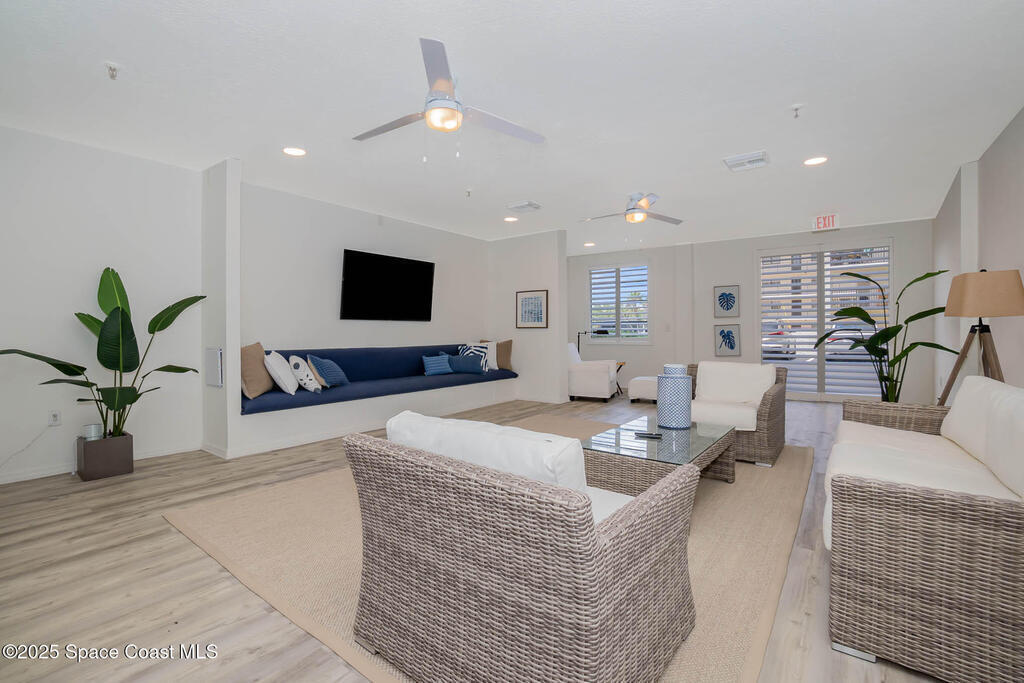 Welcome to your second-floor residence at 333 By The Sea, an exclusive coastal condominium offering space, comfort, and character. This light-filled unit features an open layout with stunning sunset views from both the living areas and bedrooms. Just steps from the ocean, enjoy year-round beachside living in a clean, well-maintained, and truly move-in-ready home, complete with a NEW HVAC system installed in November 2025. The building--formerly a NASA office facility--offers unique architectural character and allows rentals with a one-month minimum lease, providing excellent flexibility. HOA fees include water, Spectrum cable, and high-speed internet, available both in the unit and the common areas. Recent updates to the secured lobby, social room, fitness center, heated pool, and bocce court create a refined, resort-style atmosphere. Enjoy uncrowded white-sand beaches and a prime location just three blocks from the dining, shopping, and nightlife of downtown Cocoa Beach