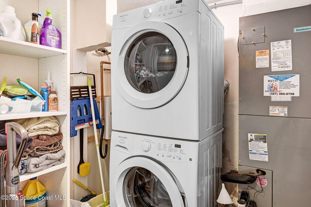 DEEDED Boat Slip w/unit in this fabulous waterfront community with Private Marina. The amenities are amazing! Salt water Heated Pool and Hot Tub. Pool is chilled in the summer. Beautiful clubhouse with full kitchen, restrooms, showers and sauna. Fitness room overlooking private marina. Tennis and pickleball courts. Fishing pier & park benches to watch incredible sunrises and wildlife. Enter Atrium with lush foliage to access elevator or stairs. Unit is turnkey w/beautiful furnishings, open floor plan & huge private balcony Oversized sliders from living/dining area & two bedrooms w/direct access to balcony. Split floor plan! MBR w/private bathroom suite & custom closets. Guest bath w/tub & shower. Beautiful kitchen with custom cabinetry and granite counters. Lots of closets & huge private storage area in garage. Additional assigned parking & plenty of guest parking available. Boat slip can accommodate 32 ft vessel. Electric & water at docks. Lease/purchase or rent/option available!