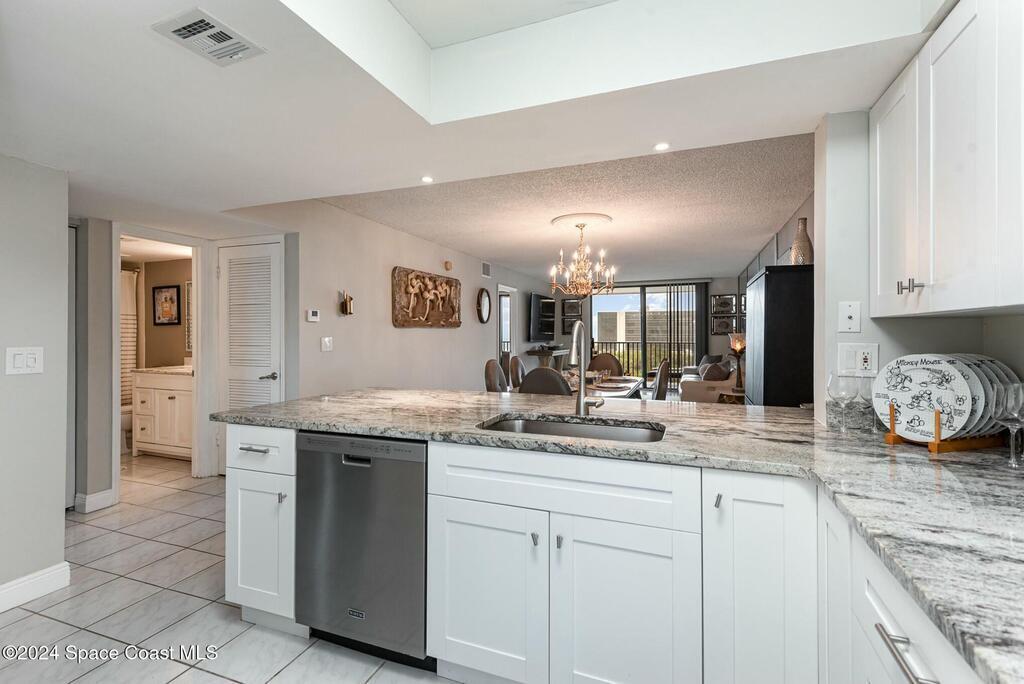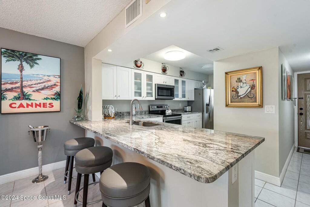 Turn key Ocean View Condo - Perfect for Full-Time Living or Rental Investment. Ready to move in or start earning rental income immediately, this condo offers an unbeatable combination of comfort, convenience and style. Enjoy breathtaking ocean views from your private balcony, just steps away from the beach.This fully renovated kitchen features oversized granite countertops, brand-new cabinetry and a new dishwasher. The spacious, open-concept living area is tastefully furnished with high-end pieces, including a luxurious leather reclining sofa. Located just 1 hour from Orlando International Airport, Disney attractions and conveniently located near grocery stores, restaurants, and shops. Exclusive amenities include private beach access, a heated pool & jacuzzi, gym, tennis and pickleball courts and a new EV charging Station.Offered completely furnished and ready to go - don't miss this incredible opportunity!