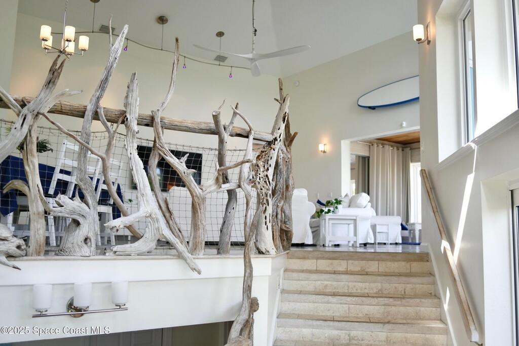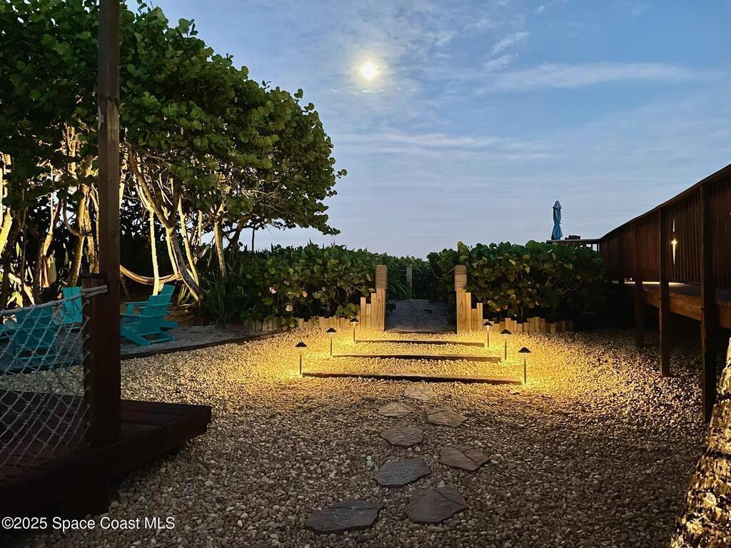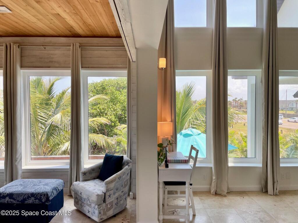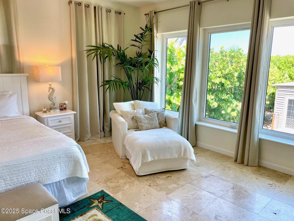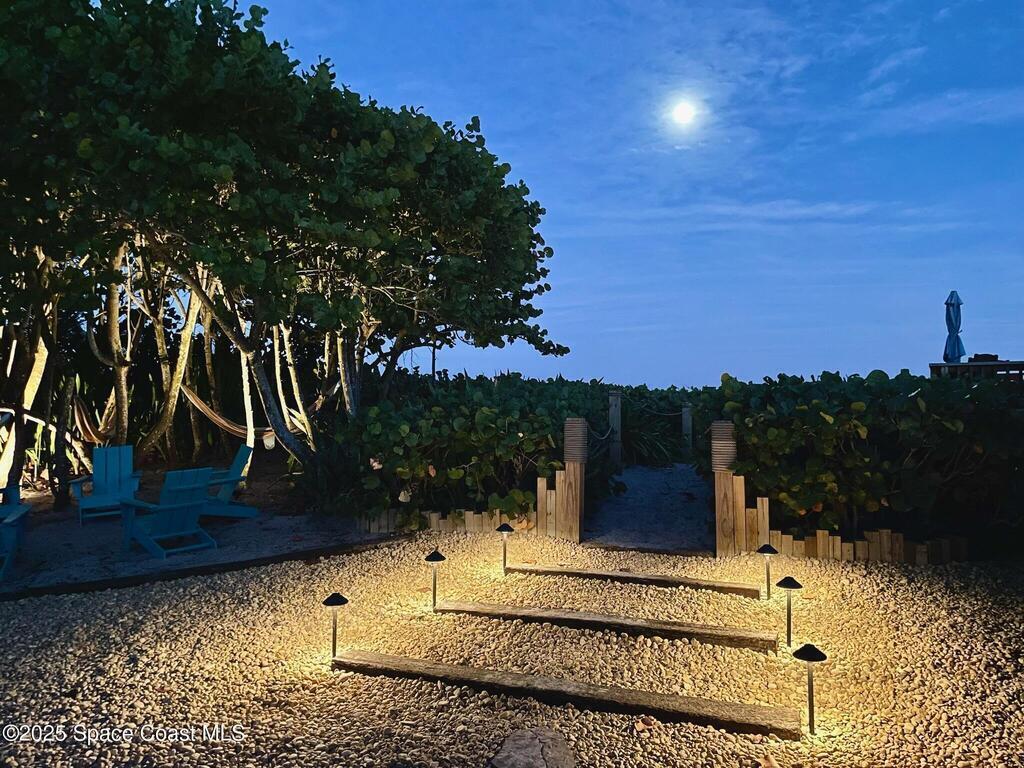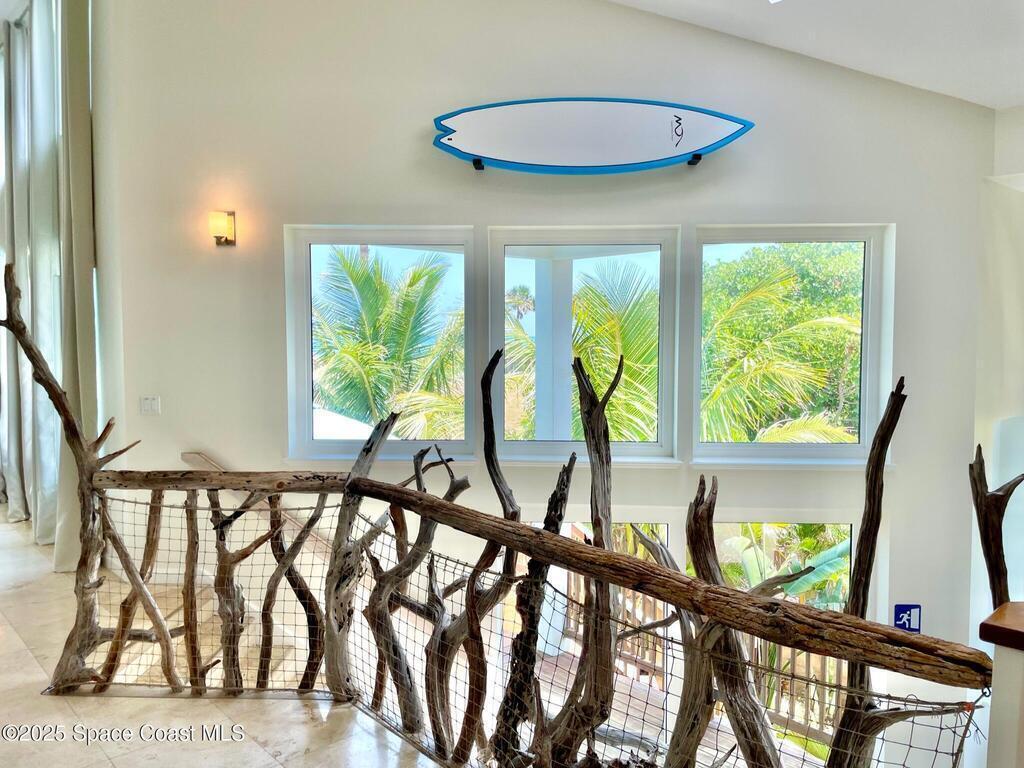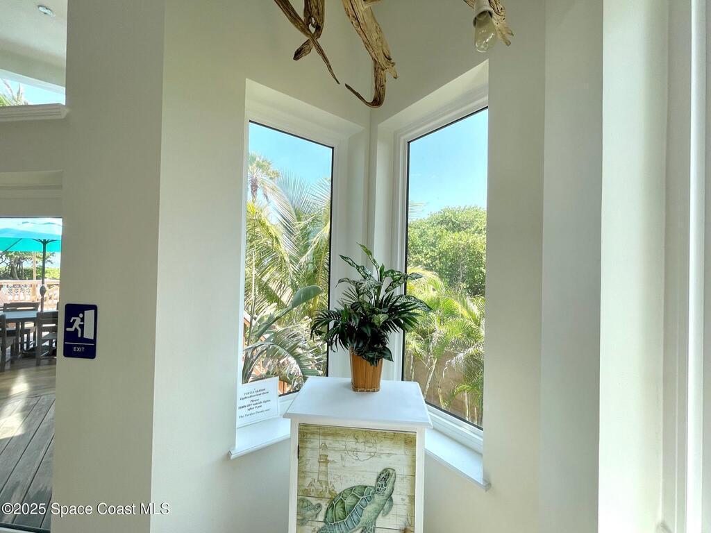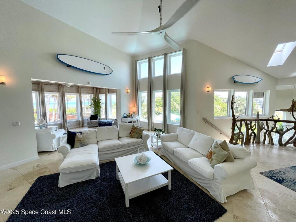 Experience coastal luxury in this exceptional direct oceanfront estate offering approx. 150 ft of private beach frontage. Set on a generous 12,000+/- sq ft lot, this refined retreat features over 4,000 sq ft of living space with 4 bedrooms and 3 baths, designed for both relaxation and entertaining. Three spacious patios with BBQ area create the ideal setting for gatherings, poolside lounging, or enjoying s'mores by the fire pit under the stars. Take in breathtaking sunrises, rocket launch views, and seasonal sea turtle hatchings from your own backyard. The first level includes a private mother-in-law suite with living area and wet bar, perfect for guests. Upstairs, floor-to-ceiling windows showcase sweeping ocean views. The gourmet kitchen is equipped with a Sub-Zero refrigerator, Wolf range with warming drawer, stainless steel appliances, and ample workspace. Additional features include dual split A/C, whole-home water softener, and generator. Live your best life in paradise every day.