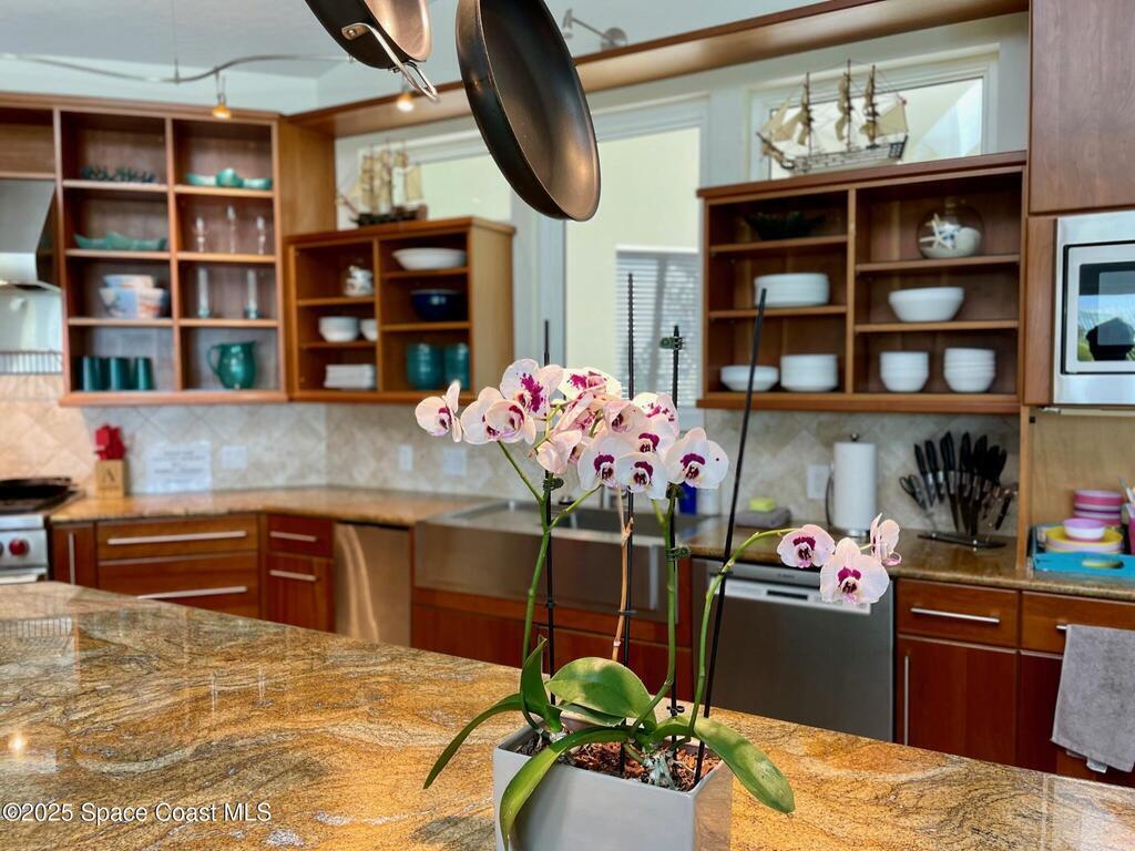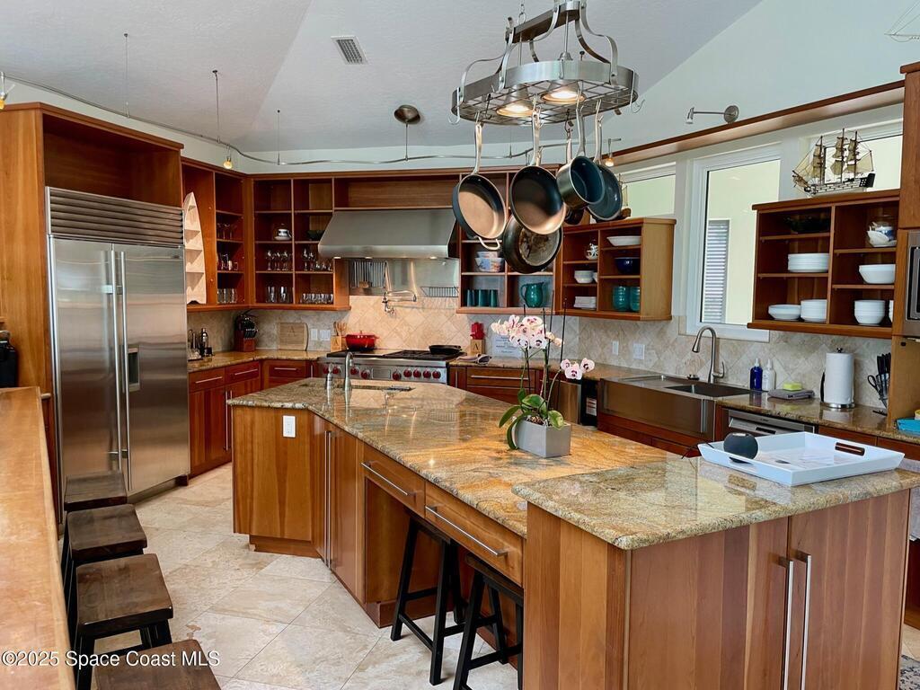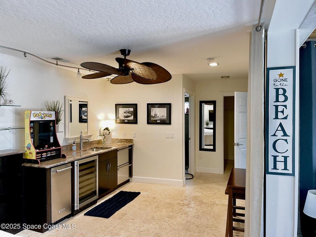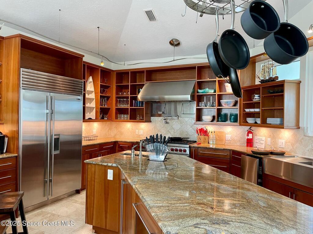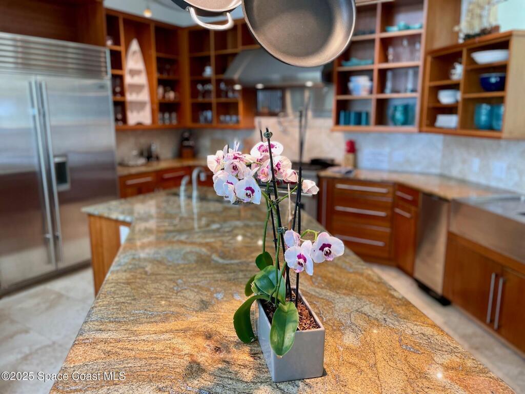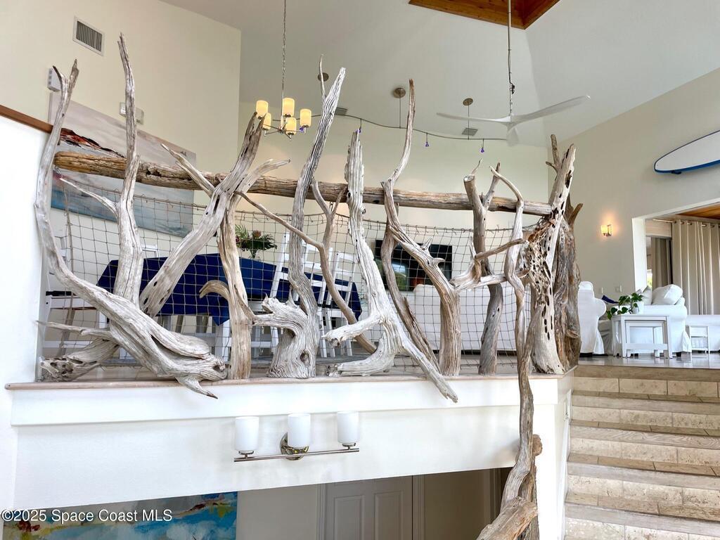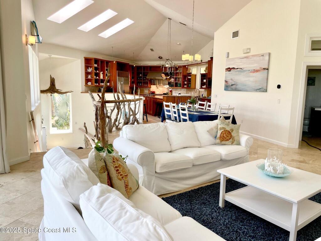 Experience coastal luxury in this exceptional direct oceanfront estate offering approx. 150 ft of private beach frontage. Set on a generous 12,000+/- sq ft lot, this refined retreat features over 4,000 sq ft of living space with 4 bedrooms and 3 baths, designed for both relaxation and entertaining. Three spacious patios with BBQ area create the ideal setting for gatherings, poolside lounging, or enjoying s'mores by the fire pit under the stars. Take in breathtaking sunrises, rocket launch views, and seasonal sea turtle hatchings from your own backyard. The first level includes a private mother-in-law suite with living area and wet bar, perfect for guests. Upstairs, floor-to-ceiling windows showcase sweeping ocean views. The gourmet kitchen is equipped with a Sub-Zero refrigerator, Wolf range with warming drawer, stainless steel appliances, and ample workspace. Additional features include dual split A/C, whole-home water softener, and generator. Live your best life in paradise every day.