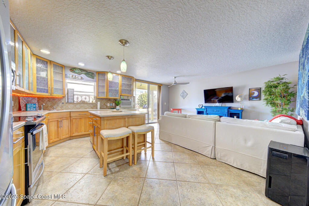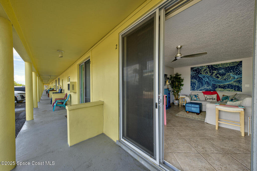 Enjoy the beach lifestyle in this beautifully renovated first-floor condo featuring 1 bedroom and 2 full baths, including a jetted tub. Updates include travertine tile throughout and a standout kitchen with stainless steel appliances, ceiling-height cabinetry, and a movable island. Perfect for everyday living and entertaining.The spacious bedroom includes a new A/C unit, and on-site laundry is conveniently located just steps from the unit.Ideally situated near Ron Jon Surf Shop in the highly desirable Ocean Beach Blvd area, you're within walking distance to shops, dining, and everyday conveniences. Just a short drive to the port or downtown Cocoa Beach, where year-round events and activities await. Enjoy rocket launch views right outside your door, beachside festivals, and local favorites like Surfing Santa on Christmas Eve. Sunrise walks along the shore are truly unforgettable.Also available for rent: 3-month minimum, $2,100/month.