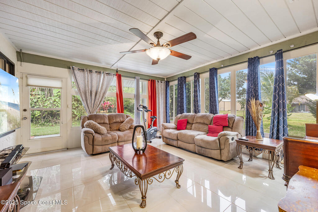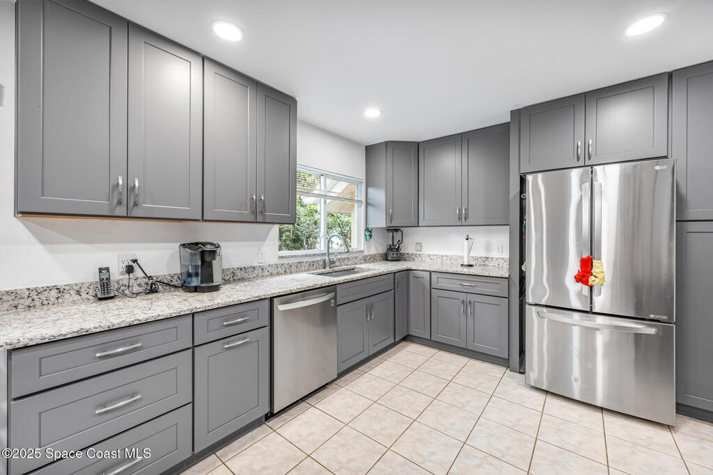 Conveniently located in Central NE Palm Bay, this 3-bedroom, 2-bath home sits on a spacious .32-acre lot and offers an open floor plan ideal for everyday living and entertaining. The brand-new remodeled kitchen (2024) features gray cabinetry, new appliances, ample counter space, and generous storage. The primary suite includes a private sitting area and a large bathroom with dual sinks, modern tile work, and a spacious walk-in shower.The Florida room is under air, adding approximately 240 sq. ft. of additional living space and includes accordion shutters. Enjoy a large, private yard with mature avocado and mango trees, along with coconut palms, creating a true Florida oasis.Major updates include a new roof (2024), new water heater (2024), and accordion shutters for storm protection. Ideally located near shopping, dining, L3Harris, Florida Institute of Technology (FIT), and beautiful beaches.