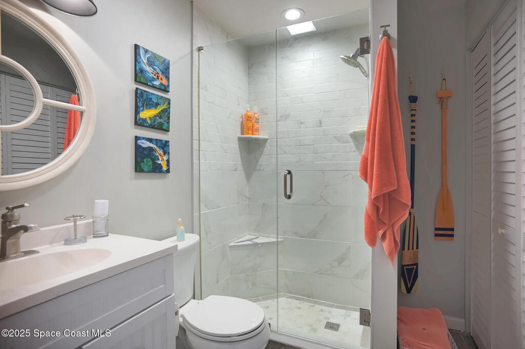 Beautifully remodeled coastal and beachy townhome in Beachwoods has it all! Brand new A/C heat pump and outside condenser. Hurricane impact full glass front door and side light and windows have roll down hurricane shutters. Bathrooms were remodeled in 2021 with all new tile and fixtures, walk in showers and custom glass enclosures and doors. Spacious remodeled kitchen has quartz countertops and recently replaced S/S appliances. All interior doors are upgraded and new. Custom woodwork and trim plus crown molding and wainscoting. Brand new custom staircase and railing. Cozy up to wood burning fireplace with new stainless steel cap. Lanai renovated with sliding acrylic windows, walls and door all new. Outside of lanai is perfect for entertaining. HWH replaced 2018. Recessed lighting and updated electrical panel. HOA fee includes cable /wifi & access to community heated pool, gym, tennis courts, basketball & racquetball courts, walk to river pier and beach access.