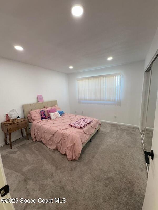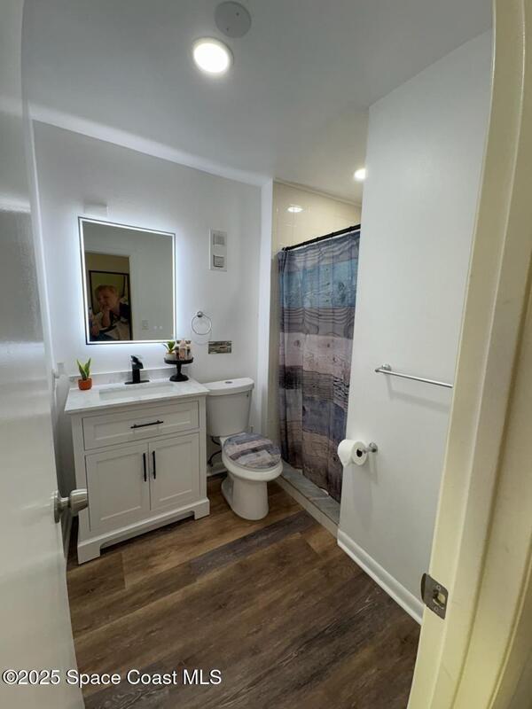 Welcome Home to Fleur de Lis! This updated 2 bedroom unit features an open floor plan and a screened-in balcony overlooking the shuffleboard court and perfect for watching rocket launches. The remodeled kitchen is a chef's delight with granite countertops, a butcher block, and a breakfast bar for casual seating. Enjoy resort style amenities including a swimming pool, sauna, and clubhouse. Conveniently located near golf course, top rated schools, shopping, Kennedy Space Center and Brevard County beaches. Move in ready and full of charm! Don't miss your chance to live in this exceptional home in a prime location!