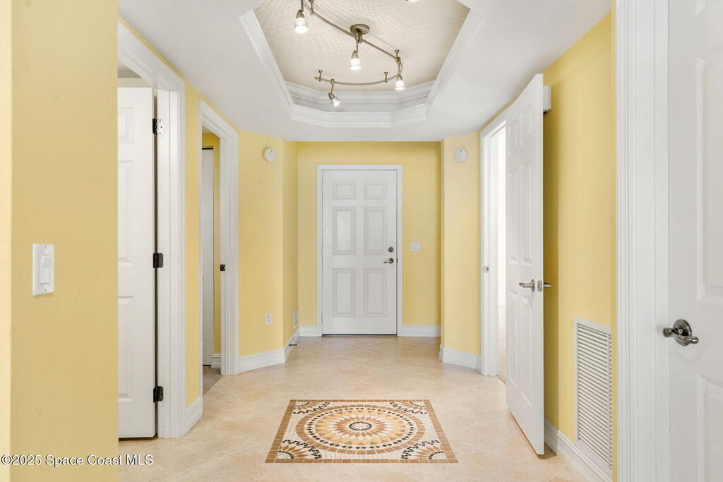 RARE corner unit with panoramic Indian River views from almost every room, set the tone for this Merritt Island riverfront condo where daily life feels wrapped in water, sky, & breeze. Open-concept living keeps the focus on the river, flowing effortlessly out to a wraparound balcony that captures sweeping scenery & sunrise-to-sunset color that turns everyday life into a retreat. The kitchen is equipped w/ SS appliances + a bright breakfast nook w/ balcony access & river views. All 3 bedrooms enjoys a full en-suite bath, w/ the guest suite extending the experience even further through a private balcony of its own. Beyond your front door, Island Pointe delivers a true waterfront resort atmosphere w/ an updated clubhouse & party room, an exercise room & sauna, 2 pools w/ hot tubs, 3 tennis, a pickleball & 2 basketball courts, all framed by a seawall & boardwalk ideal for daily walks or easily launch kayaks or paddleboards directly into the Indian River.
