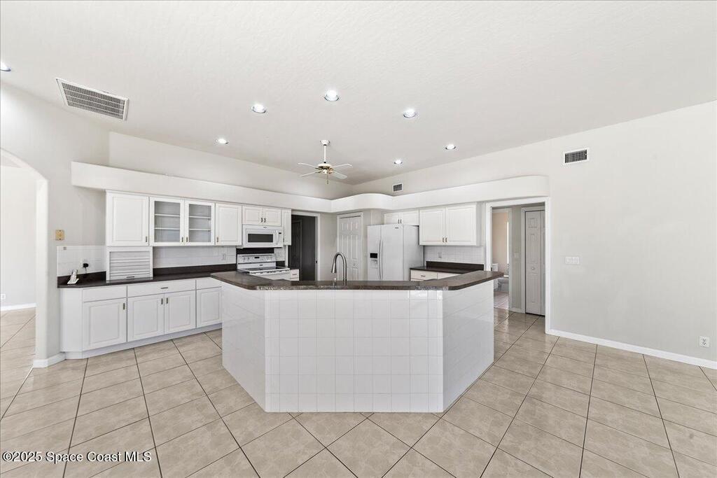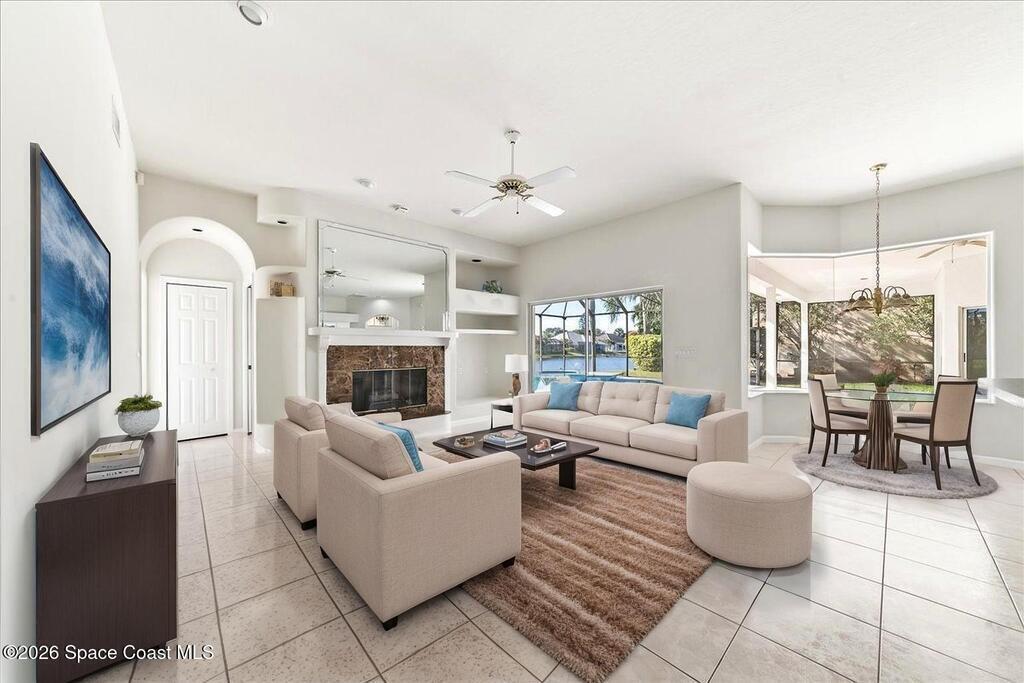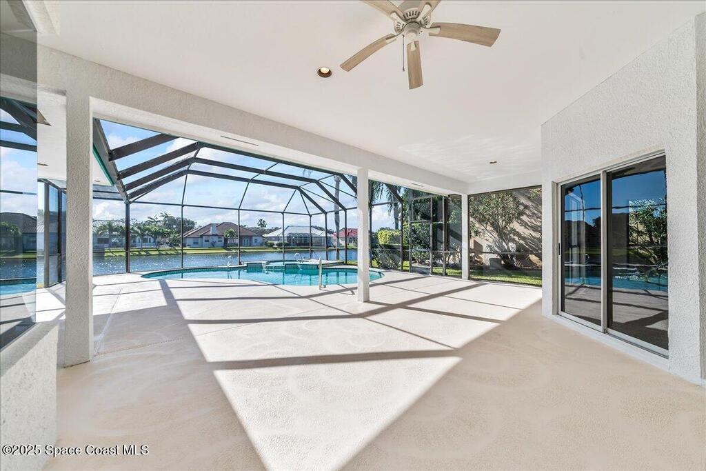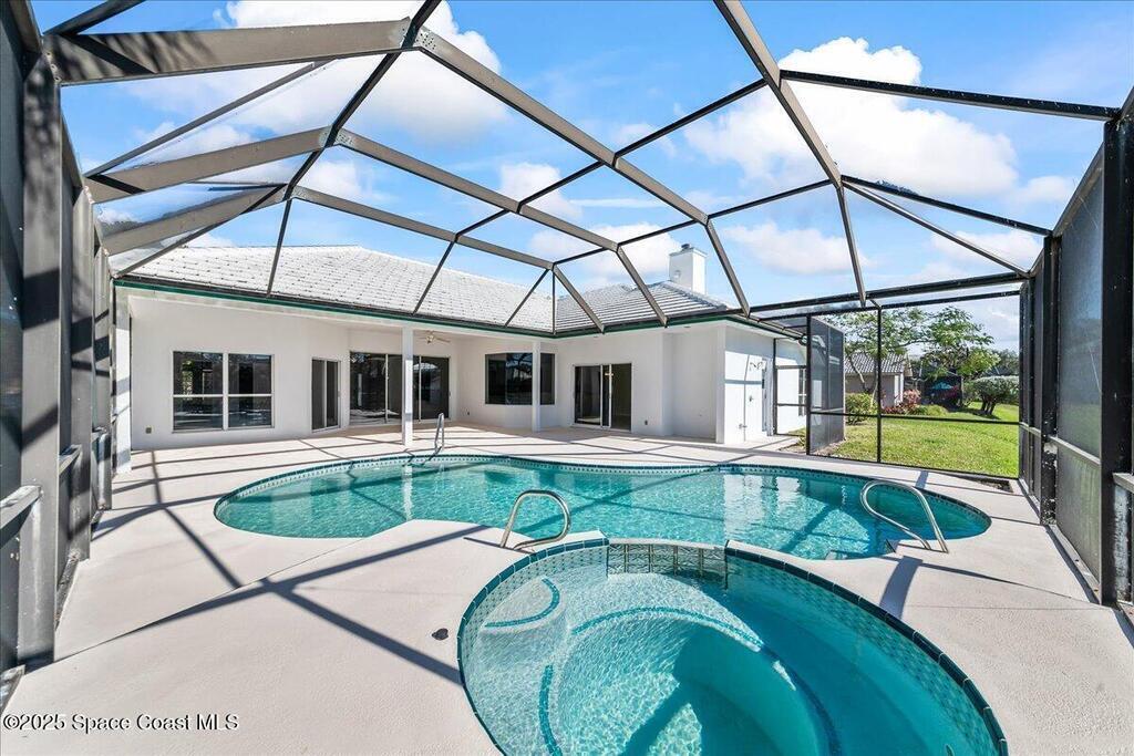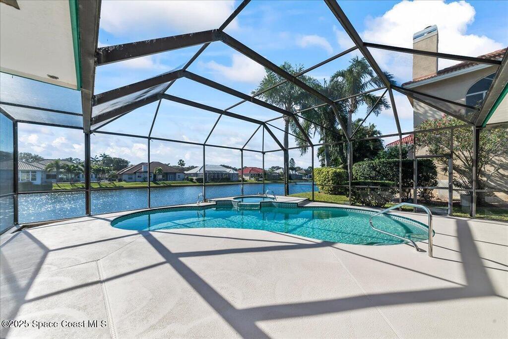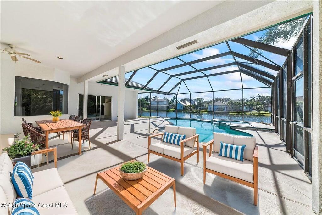 Nestled in the highly sought-after gated community of The Cloisters is this well-built move-in ready pool home on nearly 1/3 acre lot overlooking the pond. Step inside and you will see a beautiful resurfaced screened-in pool with a built-in spa. Upgrades include a newer tile roof (2021), an AC system (2025), a resurfaced pool, fresh interior and exterior paint, and new carpet in the bedrooms. The oversized 3-car garage provides plenty of space for vehicles and storage. Just 18 minute walk to the beach. Enjoy community amenities, tree-lined streets, and the convenience of coastal living in this exceptional property. Morning walks along beaches, dining at local favorites, and top-rated A schools just minutes away.