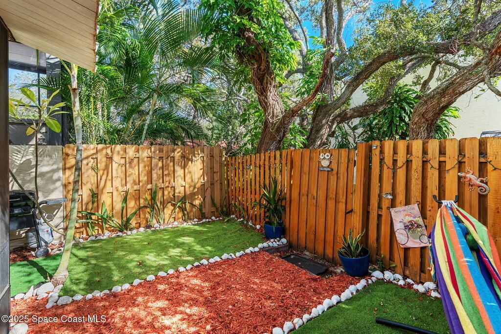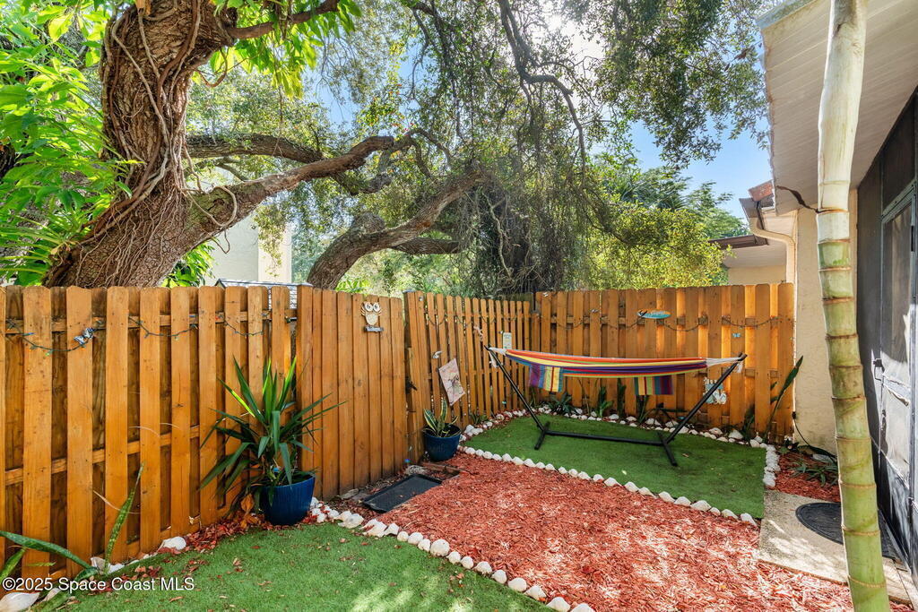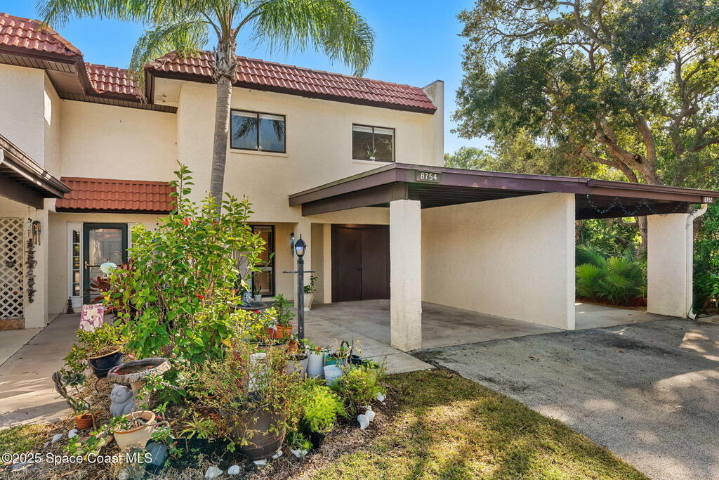 Welcome to this beautiful two-story townhome offering comfort, convenience, and resort-style living. Featuring 2 spacious bedrooms and 2.5 bathrooms, this home includes upstairs laundry conveniently located with the bedrooms, a carport, fenced-in outdoor space, and a screened-in patio--perfect for relaxing or entertaining. Recent upgrades include a new electrical panel for added peace of mind. Located in a gated community with a low monthly HOA, residents enjoy an incredible array of amenities, including two sparkling pools, a sauna, tennis courts, and private beach access. Just minutes from cruise ship terminals, shopping, and dining, this home is ideal as a primary residence, vacation getaway, or investment property. As a bonus, enjoy breathtaking rocket launches right from your backyard, creating unforgettable views and a truly unique living experience.