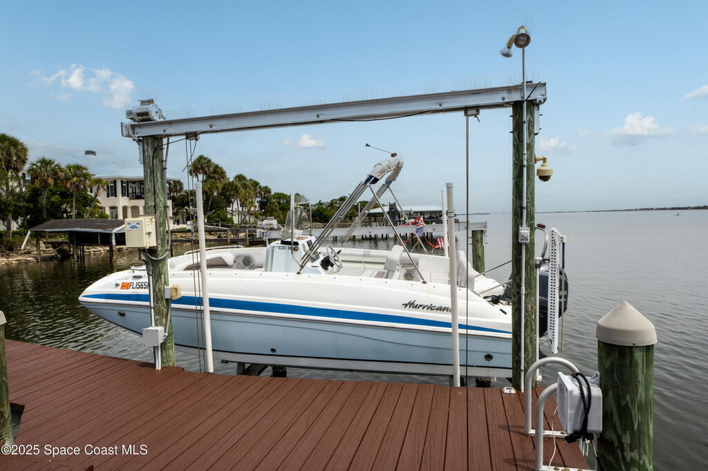 Breathtaking sunrises and sunsets await in this incredible River to River South Merritt Island Paradise Point Home. This completely renovated property is exceptionally sturdy, featuring a newer roof and impact windows throughout. It includes a dock equipped with an 8000 lb. lift. Generator inlet box, and is fully gated and fenced. There is no HOA, excellent drainage, a propane firepit, and a spacious laundry room. The third bedroom has been transformed into a game room. The kitchen boasts granite countertops, stainless steel appliances, and two separate sinks, while the expansive main bedroom includes his and her closets and huge shower. The home also features amazing refurbished terrazzo floors and a large trussed back porch, perfect for enjoying morning sunrises and relaxing in the shade during cool afternoons as the sun sets in front. Living on South Tropical Trail offers a lifestyle of tranquility, with no HOA and the privilege of residing on the finest street in Brevard.