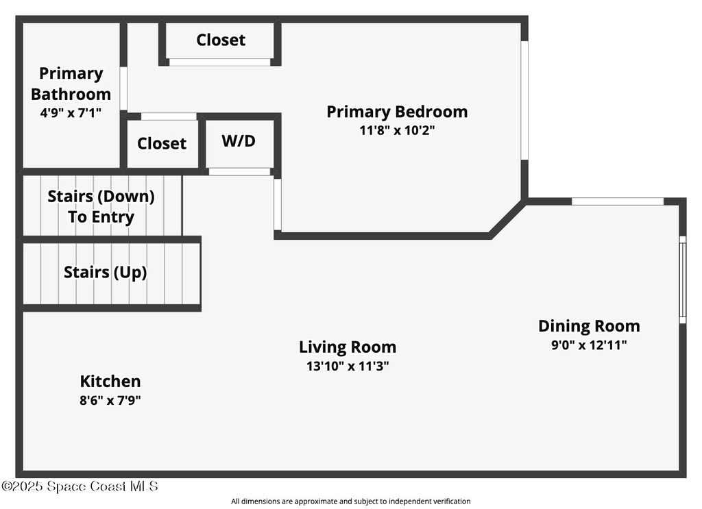 Rooms: Bathroom 1, Bedroom 1, Dining Room, Kitchen, Living Room, Primary Bathroom and Primary Bedroom