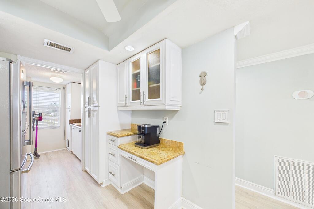 Wake up to stunning ocean views in this turn-key oceanfront condo located in the heart of Indialantic between the Eau Gallie and US-192 causeways. This beautifully maintained residence features a primary suite with Jacuzzi tub, abundant storage, electric storm shutters, and an oversized ground-level garage with extra storage. Enjoy a large private balcony with sunrises, sea turtle nesting, and rocket launch views. Community amenities include a heated pool, community room, car wash station, and private beach access. Concrete restoration is underway and fully paid with no pending assessments. HVAC 2020 (warranty through 2029), appliances 2022, tankless water heater 2020. Furniture negotiable. Conveniently located near public beaches including Canova Dog Beach and Paradise Beach, with easy access to Walmart, Publix, local entertainment at Crowne Plaza and Lou's Blues, and popular restaurants such as Texas Roadhouse, Bunky's Raw Bar, and so much more.