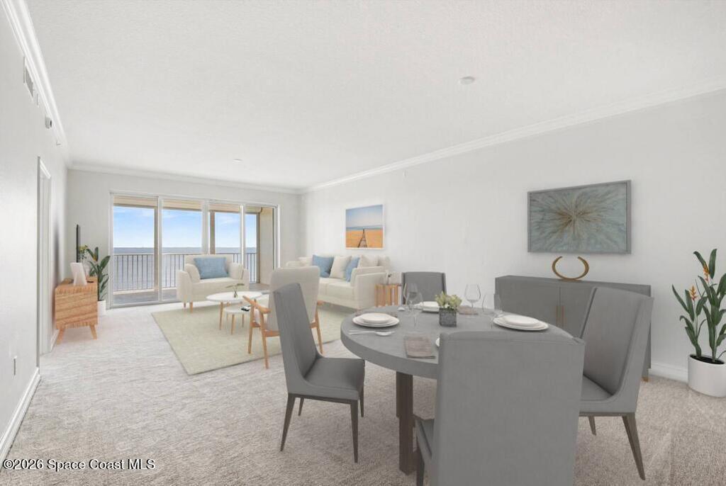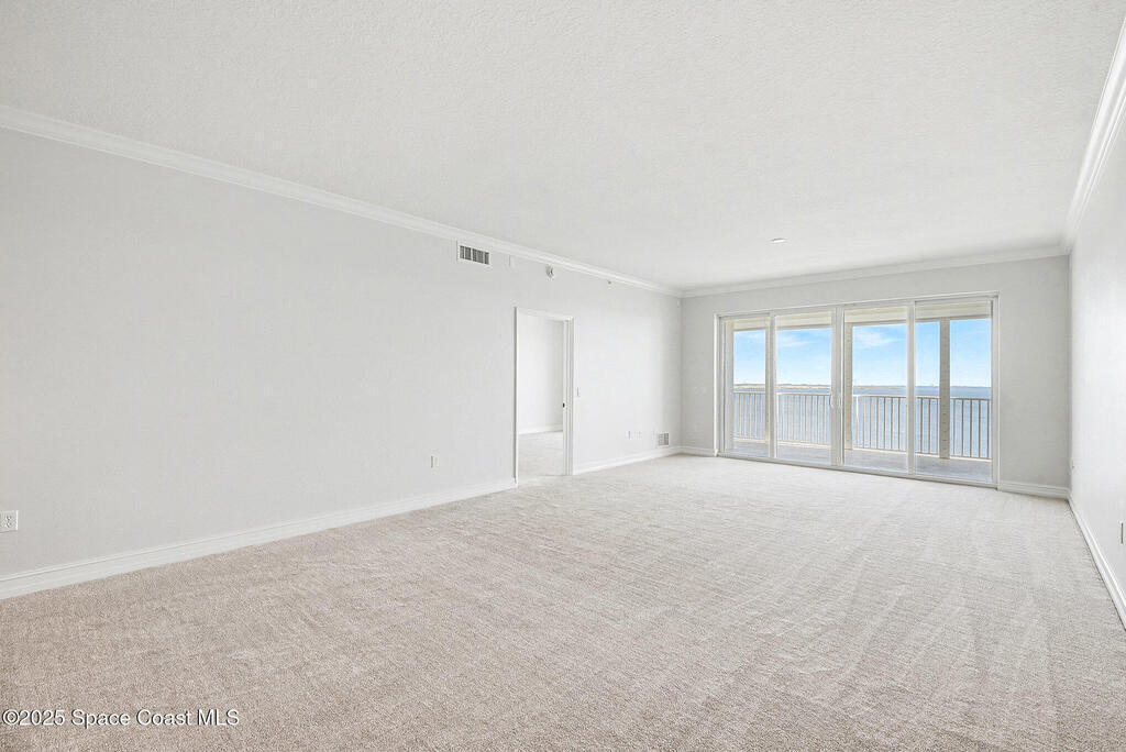 Million dollar view and the Florida lifestyle awaits a new Buyer here at Harbor Pointe. This high end riverfront community has THE BEST VIEWS of the rocket launches, guaranteed! This 11th floor unit is a desirable floor plan with the larger balcony, sliding doors on the primary bedroom, higher ceilings, upgraded cabinetry, wine cooler, electric hurricane shutters on front windows and patio, storm door, oversized private garage and newer AC. New carpet just installed and it has been freshly painted (walls, trim and doors) so it is move in ready. Community highlights are private marina, large floorplans, dual elevators per building and quiet location off major roads! Community offers several onsite amenities as well. Gated entrances, heated saltwater pool, hot tub, gym, dry sauna, basketball, tennis, and pickleball courts, clubhouse, private marina and social activities. Utilities included in monthly fee are cable, internet & water. Don't wait, schedule a private showing today!