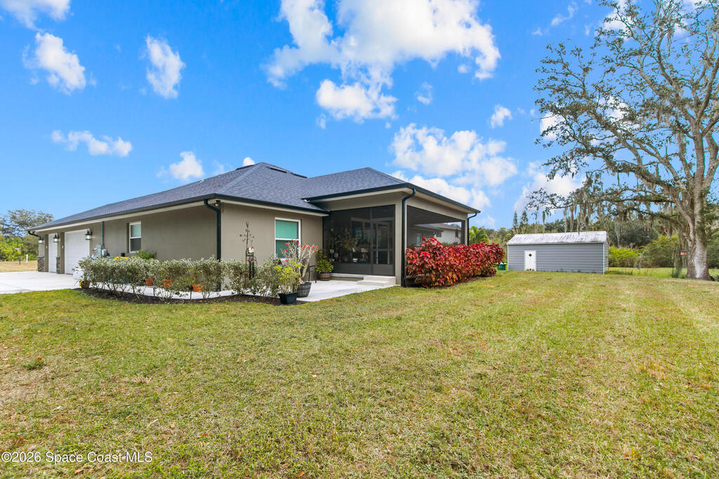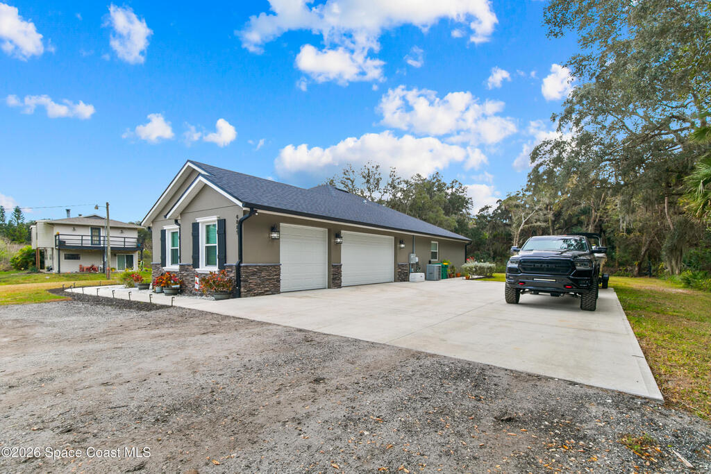 Welcome to this beautifully built 2023 home perfectly situated on a spacious one-acre lot. This four bedroom, two bath residence combines modern design, quality construction, and peace of mind.The open concept layout offers a bright inviting living space ideal for both everyday living and entertaining. The well-designed kitchen flows seamlessly into the main living area while a split bedroom floor plan provides privacy for the primary suite. Three additional bedrooms offer flexibility for family guest or a home office. Built with durability in mind, the home features impact resistant doors and windows providing enhanced storm protection. A three-car garage offers ample space for storage. Outside the expansive one-acre lot provides endless possibilities - plenty of room for outdoor entertaining, a garden, or simply enjoying privacy and open space. 50 amp hook up for your RV. Nearly new and move in ready this home offers modern comfort, safety, and room to breathe