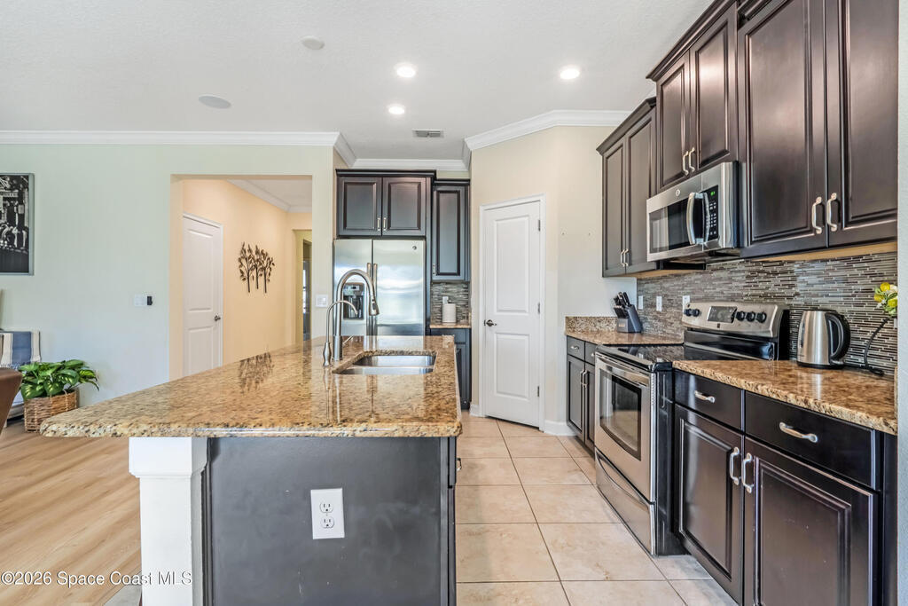 Welcome home to this beautifully updated property offering comfort, style, and an unbeatable Lake Nona-area location. Enjoy a freshly paved driveway, fresh interior and exterior paint, and brand-new luxury vinyl plank flooring that brightens the open, split floor plan. The modern kitchen features granite countertops, stainless steel appliances, and overlooks the main living area--perfect for everyday living and entertaining. A water softener system adds extra convenience. The private primary suite offers an en-suite bath with dual sinks, a soaking tub, and a generous walk-in closet. Step outside to the screened lanai and relax in the backyard retreat, complete with several mature fruit trees that provide shade, seasonal harvests, and a peaceful outdoor setting. Ideally located just minutes from MCO Airport and all that Lake Nona has to offer, including schools, dining, shopping, and entertainment.