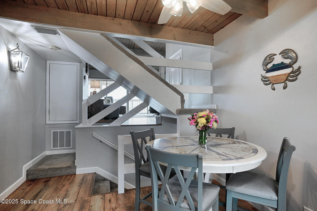 COMPLETELY REMODELED OCEANFRONT TOWNHOME STYLE RETREAT IN THE HEART OF MELBOURNE BEACH.SWEEPING OCEAN VIEWS FROM EVERY ROOM AND NIGHTLY RENTALS ALLOWED. One of the very few oceanfront communities that allows nightly rentals along the Space Coast. Air B n B your second home and create solid income stream. ENTIRE UNIT RENOVATED IN 2024 to include a completely new kitchen with soft close Kraft maid cabinetry, expansive pantry and all new S/S appliances. BRAND NEW A/C INSIDE AND OUT JULY 2023. All new floors throughout, renovated bathrooms and all new lights/fans + window treatments. Wired for electric car plug-in. Updated electrical panel and wired for electric house generator. 2 dogs allowed/no limit on weight. Complex had new tile roofs installed in 2015. Both beach crossovers rebuilt 2022 w/ composite wood. Good sized bedroom and updated bath on the 1st floor with slider opening right to beach! Primary suite has his and her closets and the bathroom has been updated beautifully.