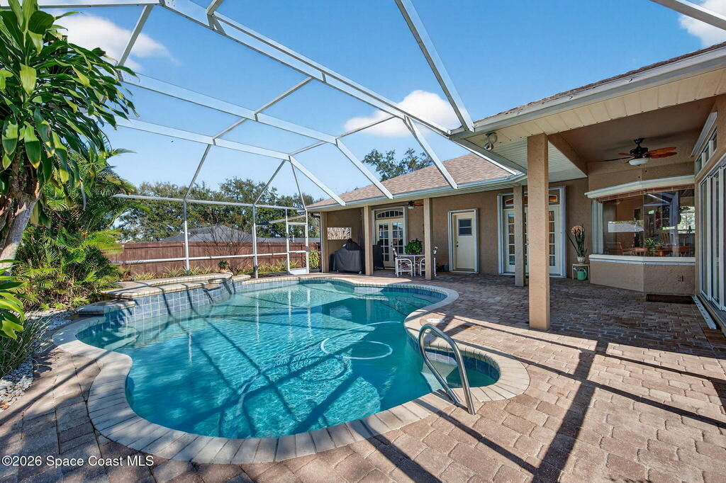 This stately one owner residence on a half acre is ideal for a growing family or multi-generational living. Built in 1992, this split plan offers comfort & space w/ 3 bdrms, 4 baths, 1,064 sq ft 3 car garage, sparkling salt water screen pool & a 10x14 outbuilding w/electric for recreational toys. The kitchen is a standout showcasing 42 inch cabinets, granite tops, stainless appliances, breakfast bar, large pantry & a bay window nook overlooking the large brick paved screen pool area. The primary suite has a large walk-in closet & the remodeled en-suite bath has a dbl vanity, granite tops, walk-in shower w/seat & soaking tub. A dumbwaiter (commercial grade) connects the 2 levels with a full basement w/a game room w/pool table, mini-refrig, bar, office (4th bdrm) full bath & abundant storage. STORM SHUTTERS. NEW PRIVACY FENCED BACK YARD, WATER HEATER & ROOF SHINGLES IN 2025. Solid construction, thoughtful upgrades w/exceptional indoor & outdoor living-all ready to be enjoyed by YOU!