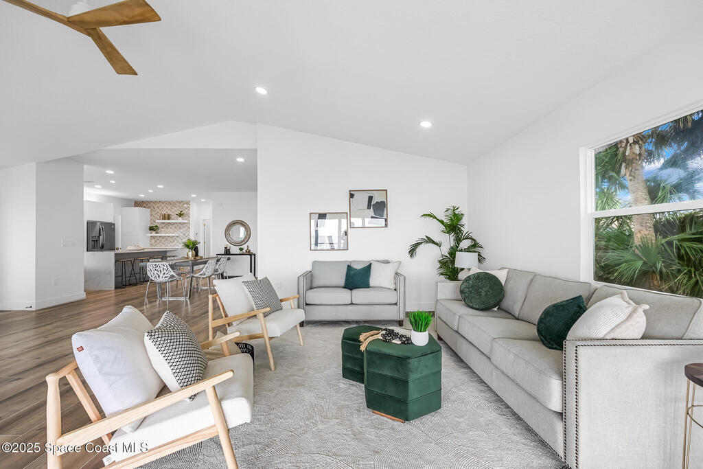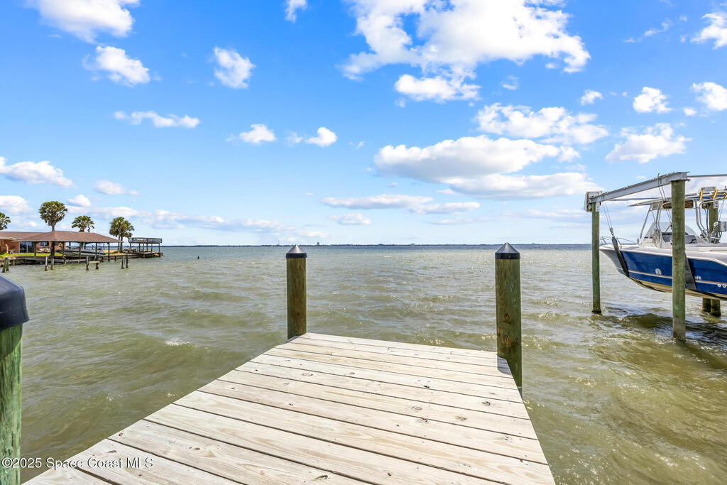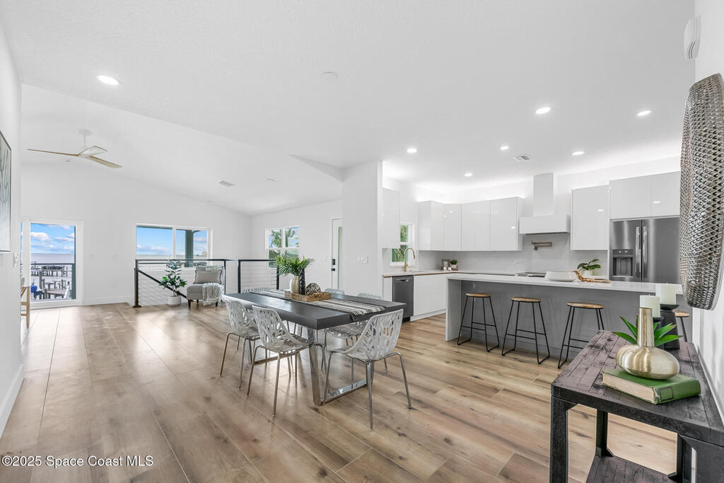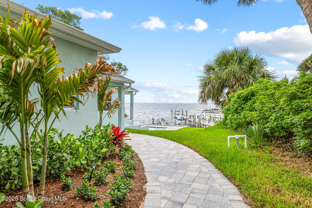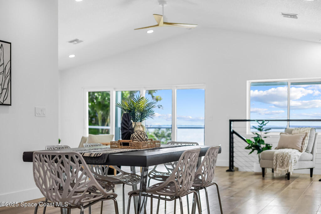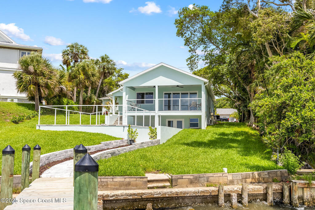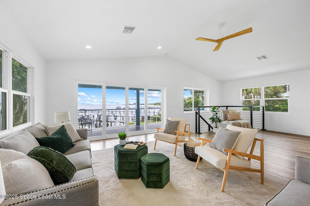 Receive $10k for rate buy down or closing costs with preferred lender! Every inch of this riverfront masterpiece has been reimagined for luxury Florida living. Taken down to the block and fully rebuilt with a 2025 effective age, this home is brand new from top to bottom.Set along the tranquil shores of the Indian River with a private dock, this 3-bedroom, 2-bath residence PLUS oversized bonus room offers over 2,400 SF of inspired living and a sparkling brand-new pool (2025)--perfect for sunset swims and weekend gatherings. The thoughtful two-story design maximizes both function and views. Welcoming vaulted ceilings, tile flooring, and abundant natural light highlight the open-concept living spaces. The living room's triple slider frames breathtaking river views and flows seamlessly into the chef's kitchen, complete with custom soft-close cabinetry, quartz waterfall island, built-in stainless appliances, wine cooler, and designer backsplash.