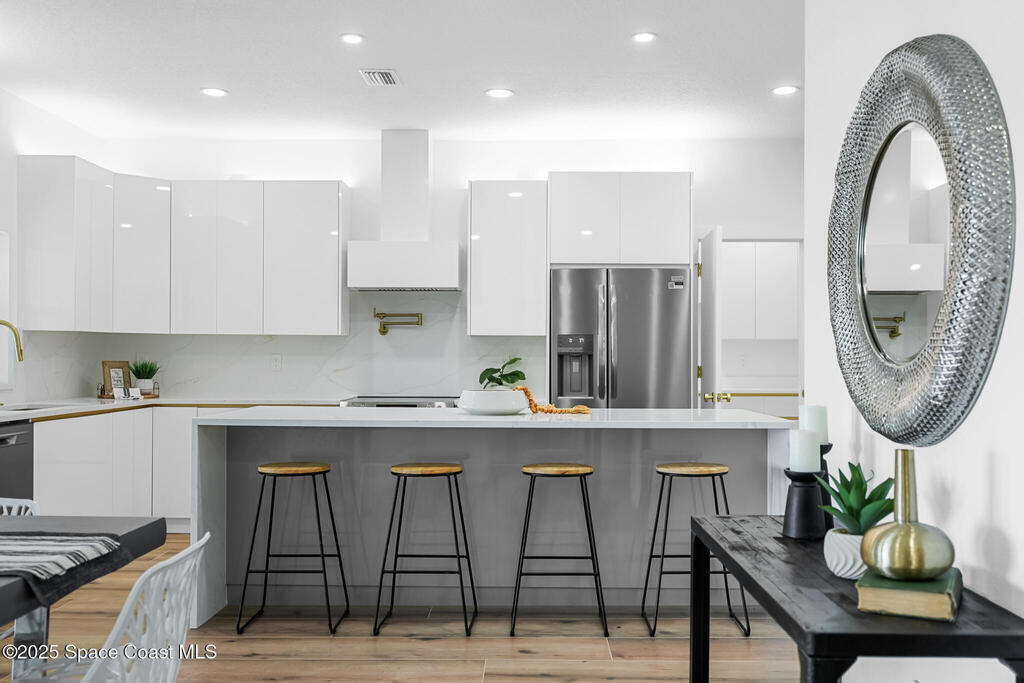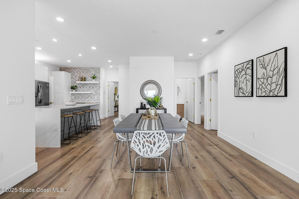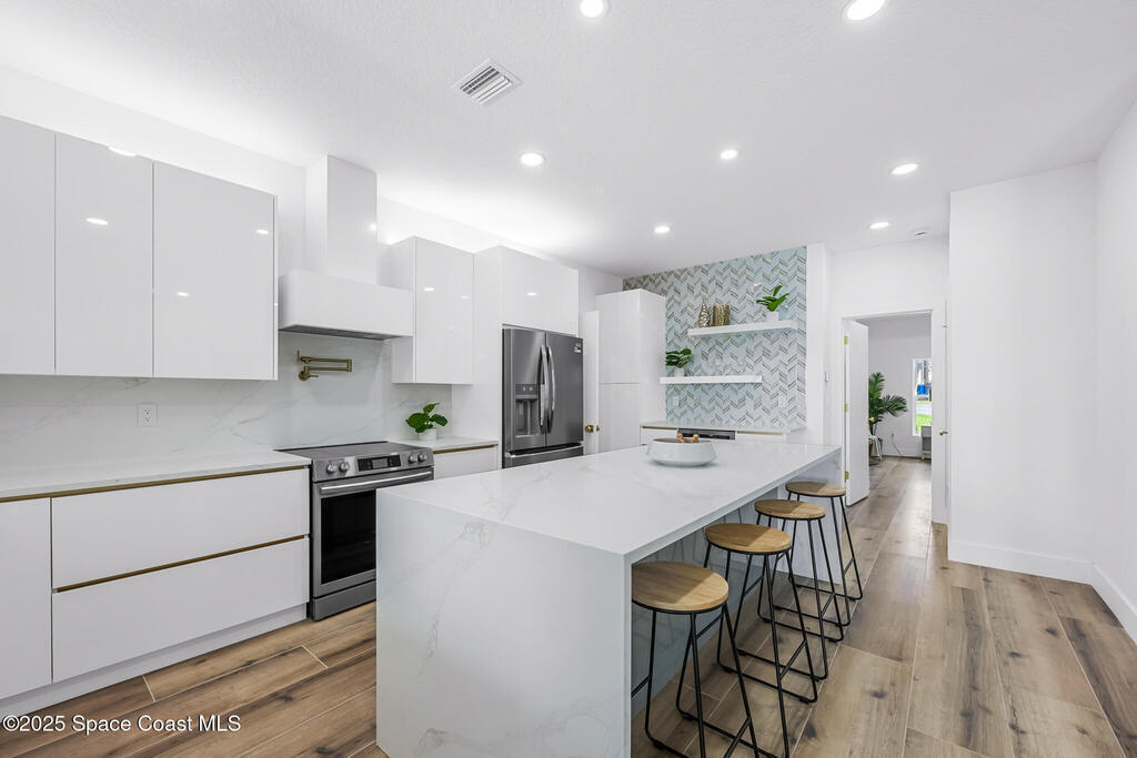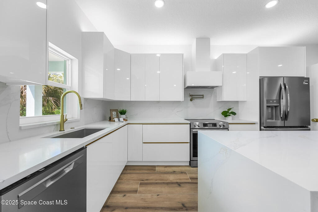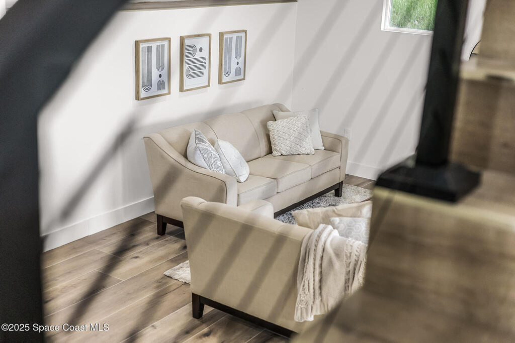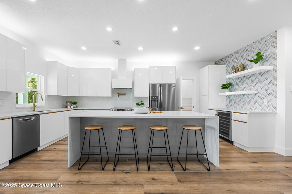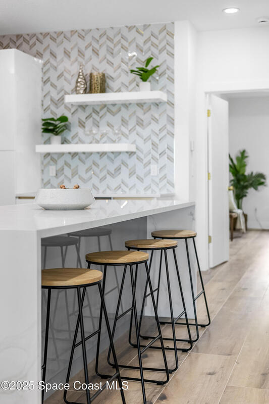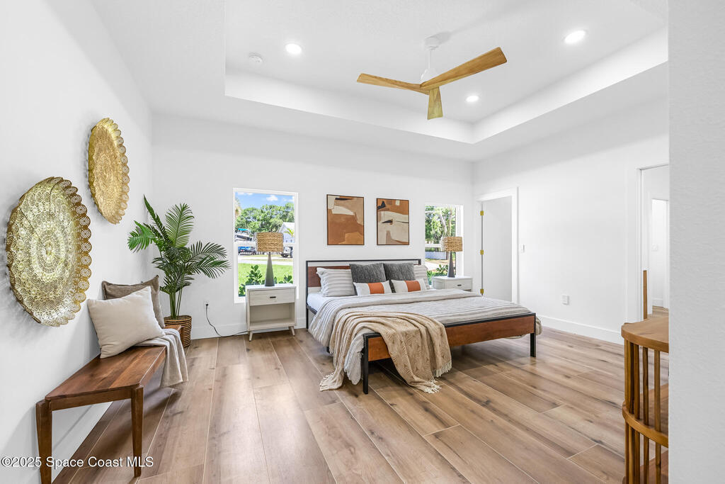 Receive $10k for rate buy down or closing costs with preferred lender! Every inch of this riverfront masterpiece has been reimagined for luxury Florida living. Taken down to the block and fully rebuilt with a 2025 effective age, this home is brand new from top to bottom.Set along the tranquil shores of the Indian River with a private dock, this 3-bedroom, 2-bath residence PLUS oversized bonus room offers over 2,400 SF of inspired living and a sparkling brand-new pool (2025)--perfect for sunset swims and weekend gatherings. The thoughtful two-story design maximizes both function and views. Welcoming vaulted ceilings, tile flooring, and abundant natural light highlight the open-concept living spaces. The living room's triple slider frames breathtaking river views and flows seamlessly into the chef's kitchen, complete with custom soft-close cabinetry, quartz waterfall island, built-in stainless appliances, wine cooler, and designer backsplash.