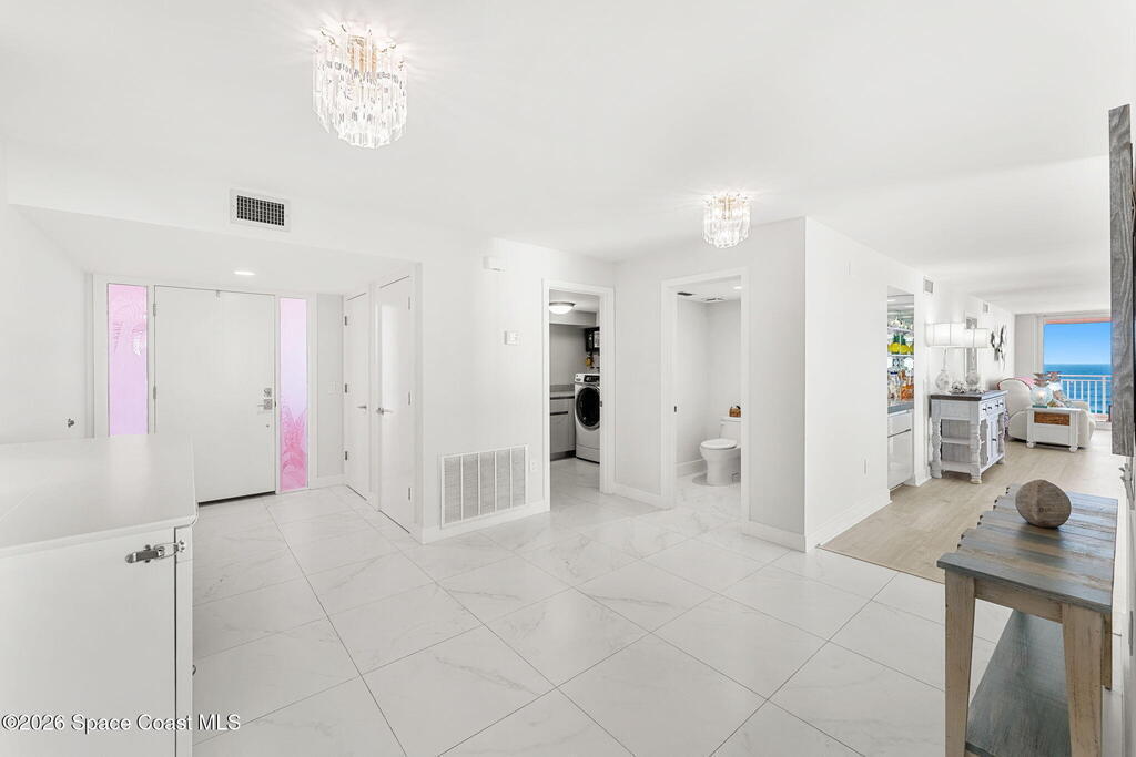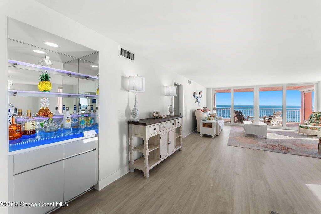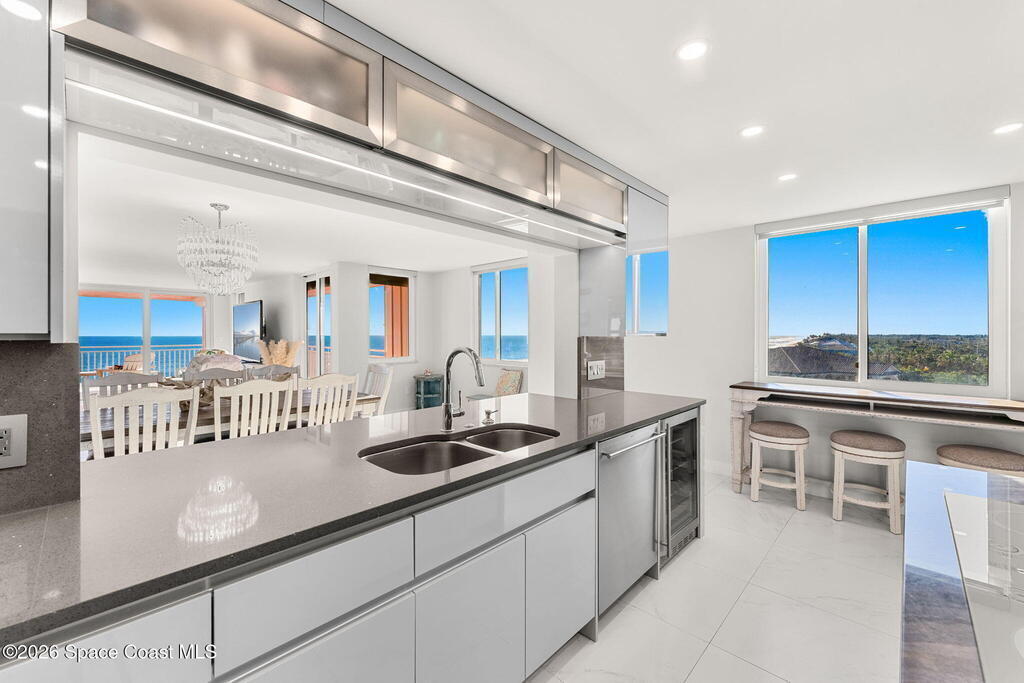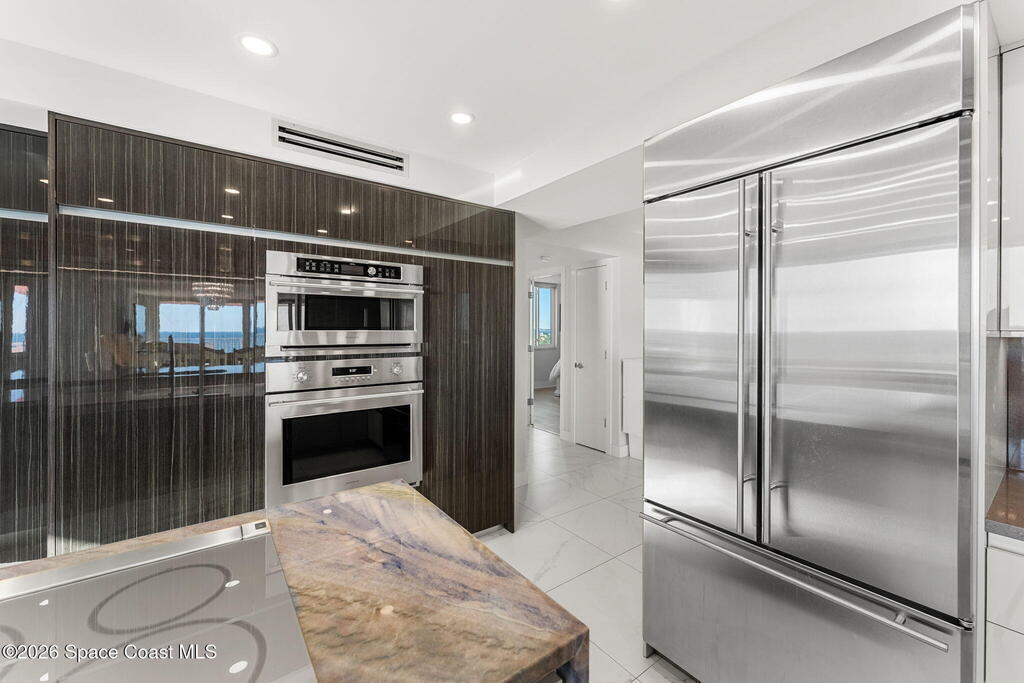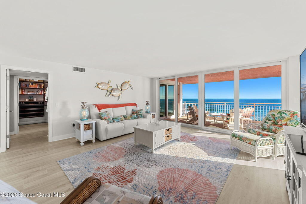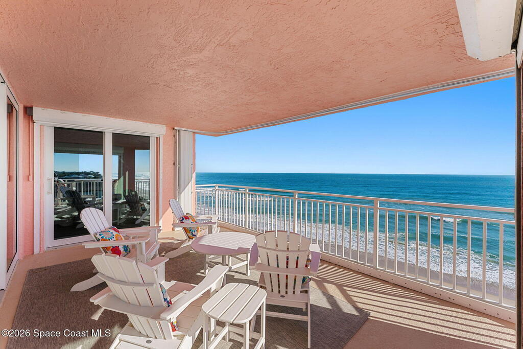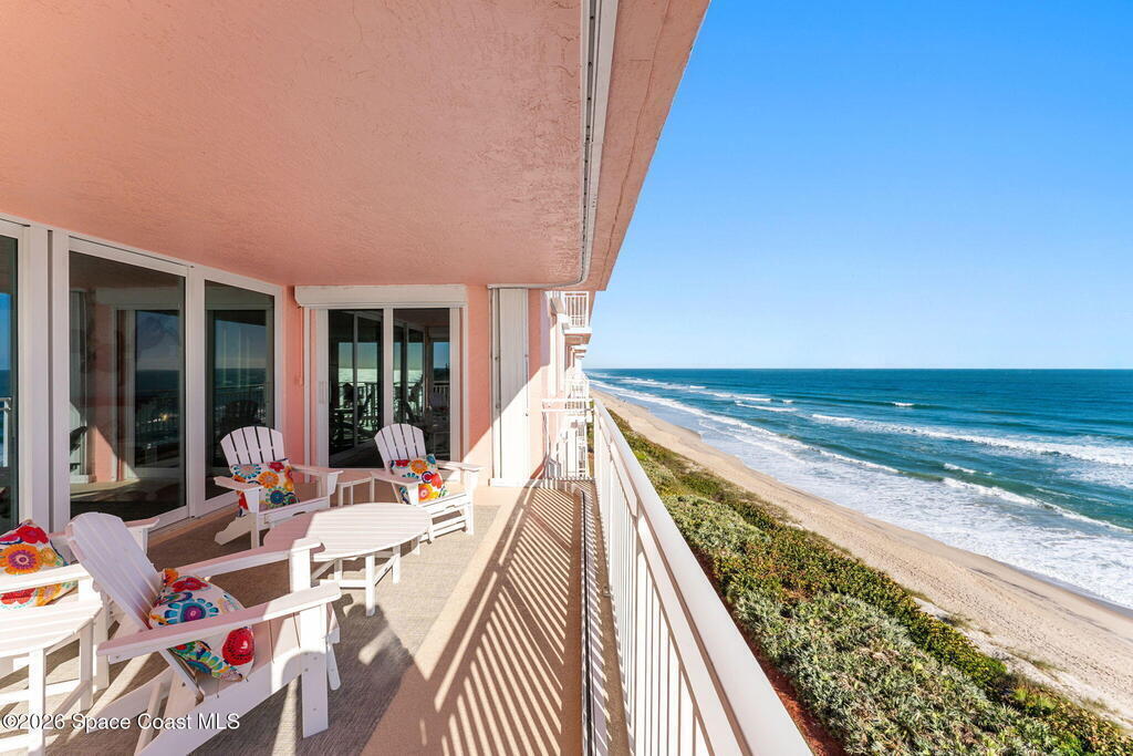 Wake up to endless blue horizons in this meticulously maintained 7th-floor oceanfront condo, where breathtaking ocean-to-river views set the stage for everyday coastal living. Perched high above the shoreline, this residence offers sweeping panoramas of the Atlantic on one side and tranquil river vistas on the other--delivering stunning sunrises and sunsets from the comfort of your home. No expense spared in the remodel from smooth ceilings to electrical replacement. For the most discerning buyer, the finest quality materials, induction cooktop, GE monogram appliances, quartzite counters, backlit glass bar, exquisite master bath spa with rain shower and jacuzzi tub. Impact windows as well as hurricane shutters. Condo features one of the largest oceanfront heated pools & hot tub, secure lobby, two elevators and workout room. Living in the Archie Carr National Wildlife refuge, watching sea turtles nest and lay eggs will absolutely take your breath away.