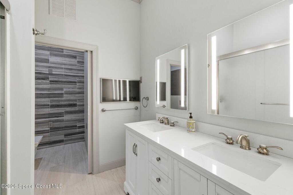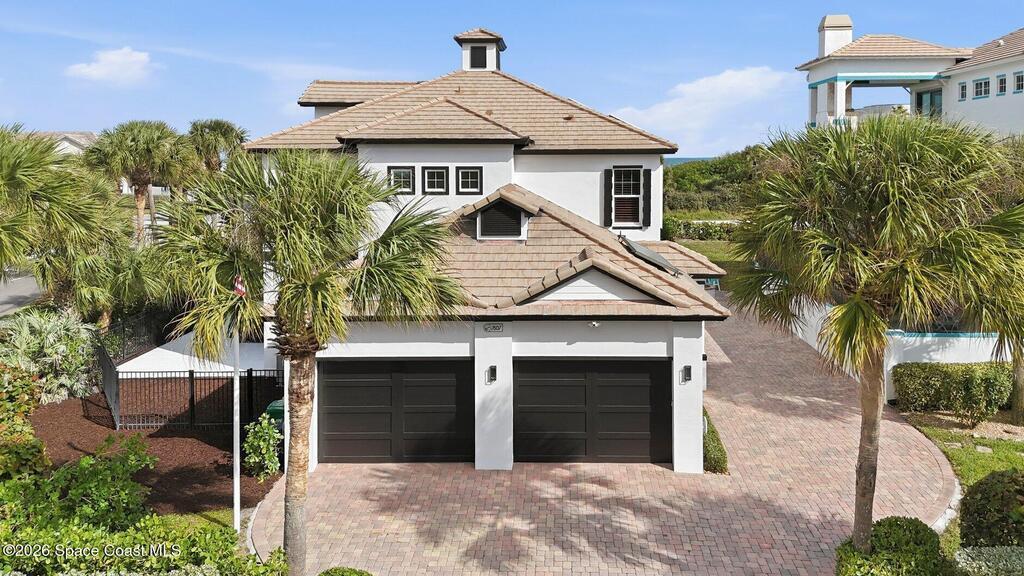 Prepare to unwind in the luxurious neighborhood of Maritime Hammock at Aquarina, the only Melbourne Beach community offering golf, tennis, boat dock with launch, restaurant and beach club access. Your coastal retreat awaits. Situated on a barrier island, this exquisite home is mere steps from the Atlantic Ocean and sandy beaches. It boasts a gourmet-style kitchen, 4-car garage, and an additional 2-car garage for car collectors. The spacious owner's suite features captivating ocean views, a walk-in closet, elegant designer spa-like bath, and a balcony overlooking the ocean. Enjoy the resort-like lifestyle of Aquarina Beach & Country Club. This stunning 3-bedroom, 2-bath + mother-in-law/owner suite beach home is situated on a 0.39-acre lot, just steps from the ocean. The property features a large paver driveway, tropical landscaping, and a fire pit, creating a welcoming atmosphere.