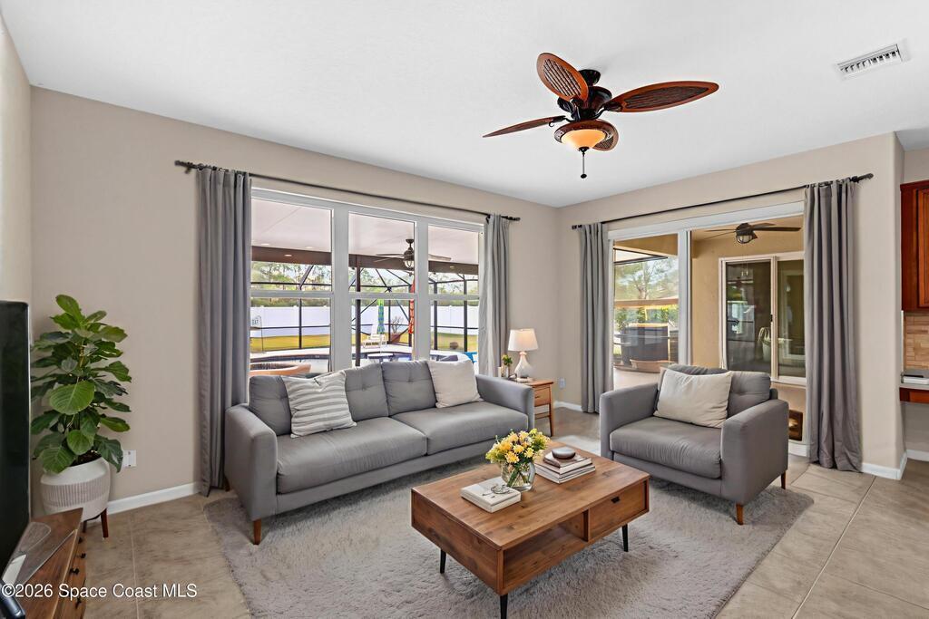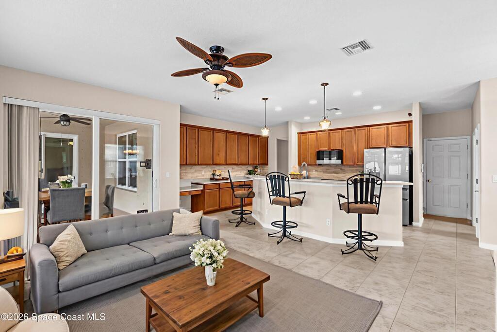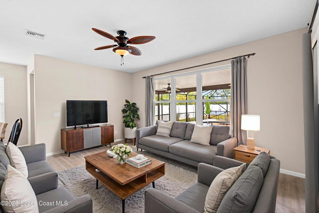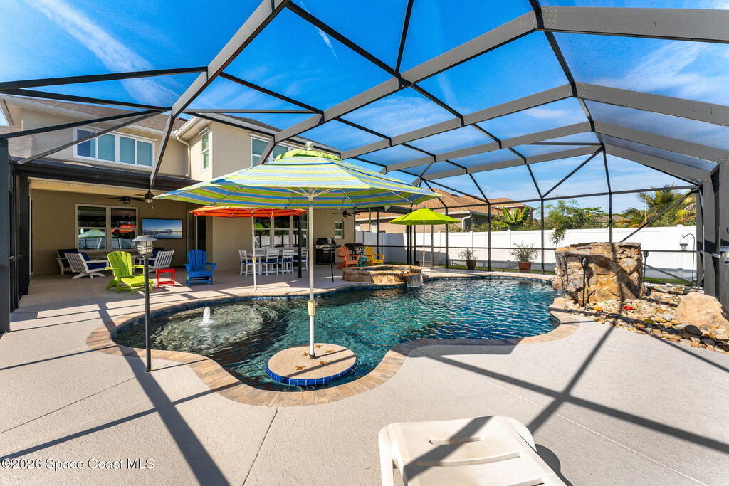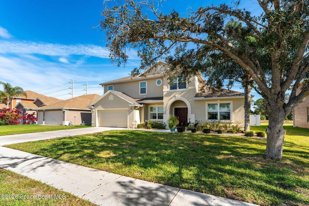 Spanning over 3,700 square feet, this exceptional 5-bedroom, 3.5-bath residence sits on a generous .27-acre fenced lot and delivers the space, upgrades, and resort-style living today's growing family is searching for. From the moment you step inside, the scale and functionality impress--beautiful flooring throughout, a thoughtfully designed two-story layout, and a seamless blend of formal and everyday living spaces. The first floor features a spacious primary suite, formal living and dining rooms, and an open family room that flows effortlessly into the chef's kitchen, making it ideal for both entertaining and daily life. Peace of mind comes with major updates already completed, including impact windows, impact doors, an impact garage door, a newer roof, replaced A/C units and water heater. The kitchen is truly a standout, outfitted with GE Cafe Series appliances, an abundance of cabinetry, generous counter space, and easy access to the expansive screened lanai. Outside, the