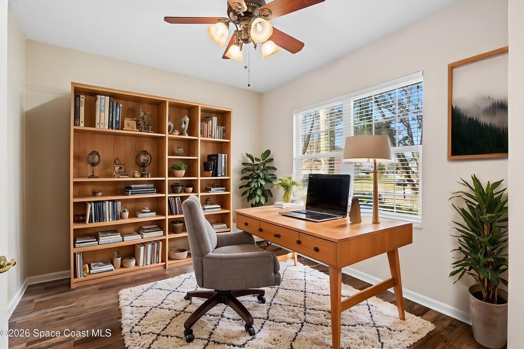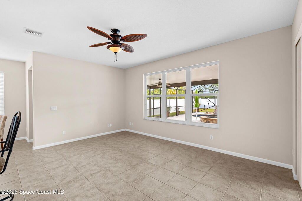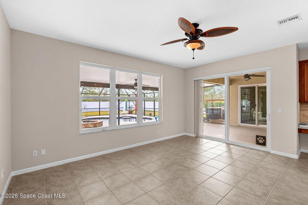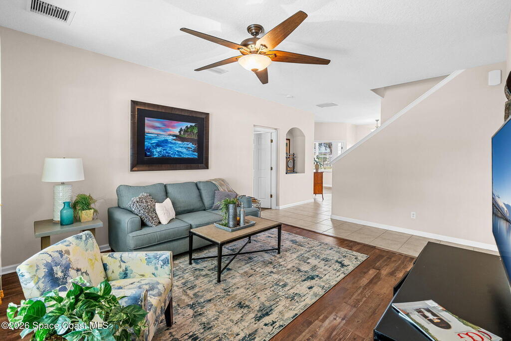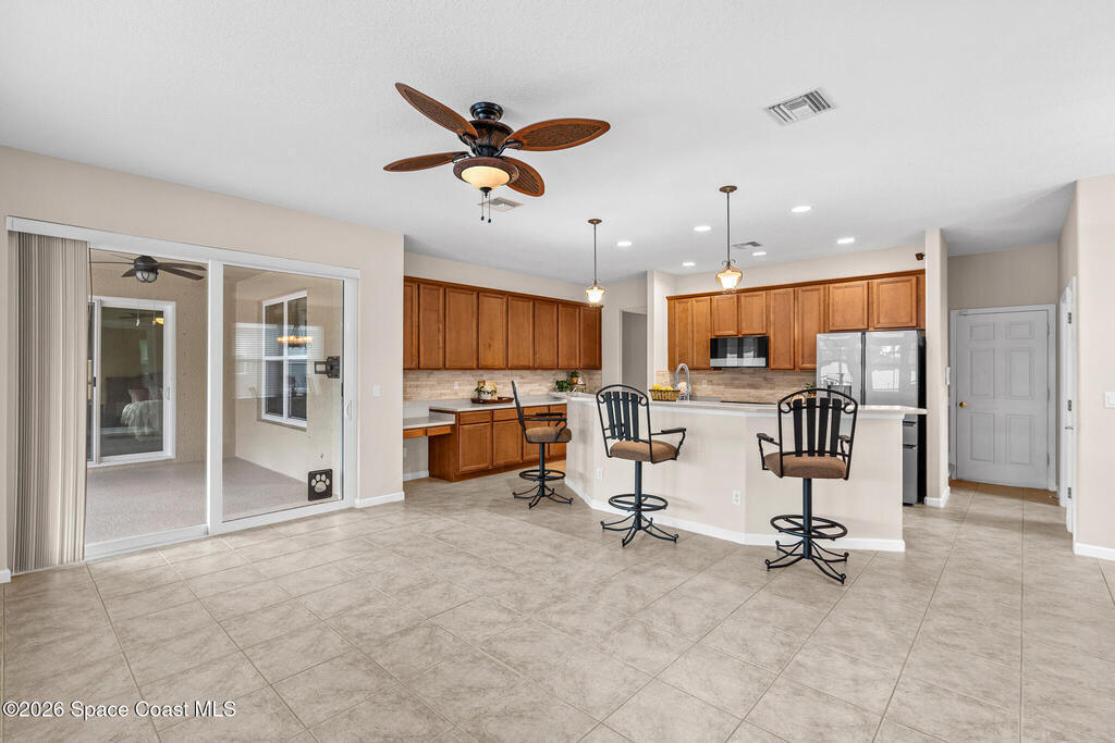 Spanning over 3,700 square feet, this exceptional 5-bedroom, 3.5-bath residence sits on a generous .27-acre fenced lot and delivers the space, upgrades, and resort-style living today's growing family is searching for. From the moment you step inside, the scale and functionality impress--beautiful flooring throughout, a thoughtfully designed two-story layout, and a seamless blend of formal and everyday living spaces. The first floor features a spacious primary suite, formal living and dining rooms, and an open family room that flows effortlessly into the chef's kitchen, making it ideal for both entertaining and daily life. Peace of mind comes with major updates already completed, including impact windows, impact doors, an impact garage door, a newer roof, replaced A/C units and water heater. The kitchen is truly a standout, outfitted with GE Cafe Series appliances, an abundance of cabinetry, generous counter space, and easy access to the expansive screened lanai. Outside, the