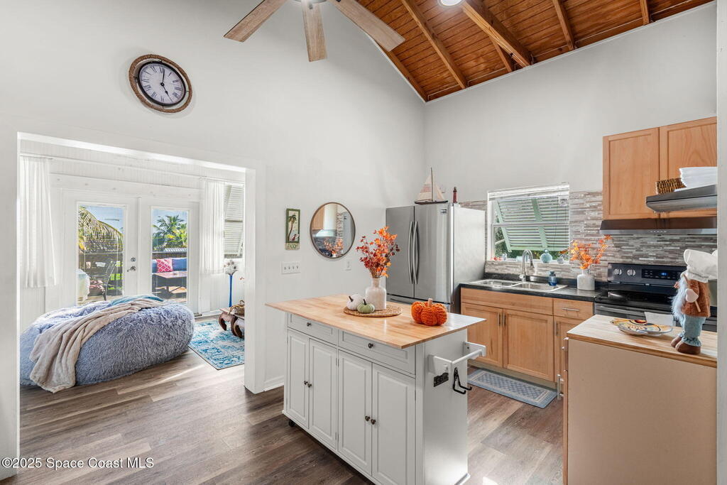 Interior Features: Ceiling Fan(s), Guest Suite, Kitchen Island, Primary Bathroom - Shower No Tub and Vaulted Ceiling(s)