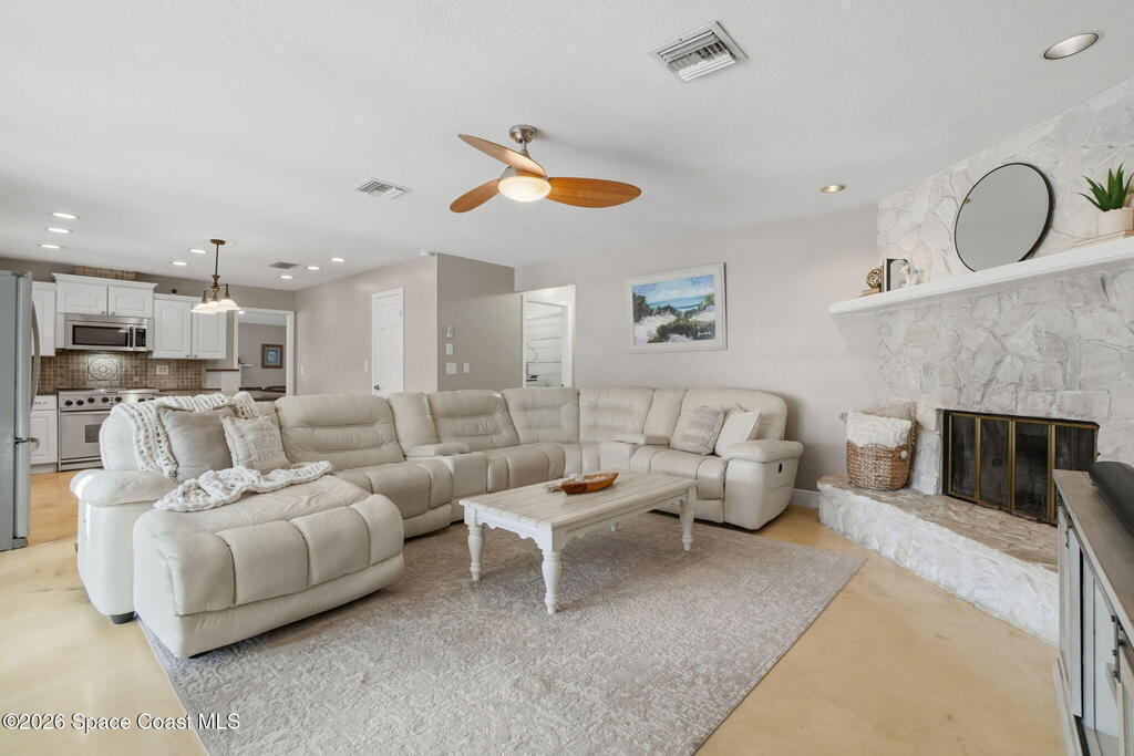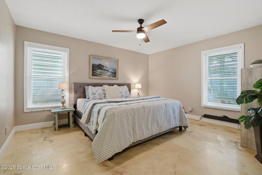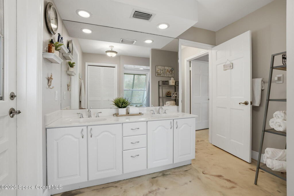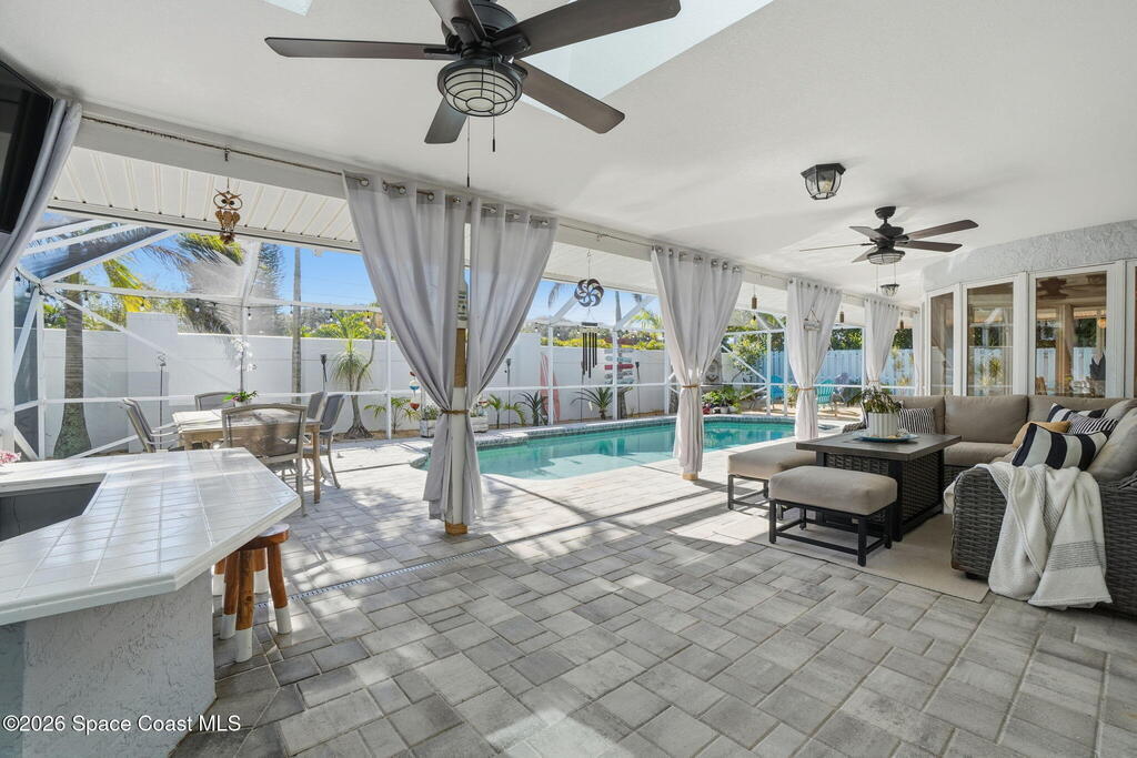 Wake up to the rhythm of the ocean in this beautifully maintained 4BR/3BA home in the guarded, gated Sanctuary community just a short walk to the beach. Thoughtfully designed for coastal living, enjoy your own saltwater screened-in pool oasis with new pavers, upgraded landscaping and a cozy firepit perfect for s'mores and sunset memories. The split floor plan offers flexibility for family and guests with a private in-law/guest suite, while each generously sized bedroom easily accommodates a king-size bed, providing comfort and space for all. The upstairs owner's suite features a private balcony to sip morning coffee and listen to the surf. Gather in open living spaces, relax by the pool or enjoy community amenities including clubhouse, courts and scenic paths. Oversized garage fits a golf cart and includes a 220vault outlet for EV charging. A home where beachside memories are made, and every day feels like a vacation.Seller is a licensed FL Realtor.
