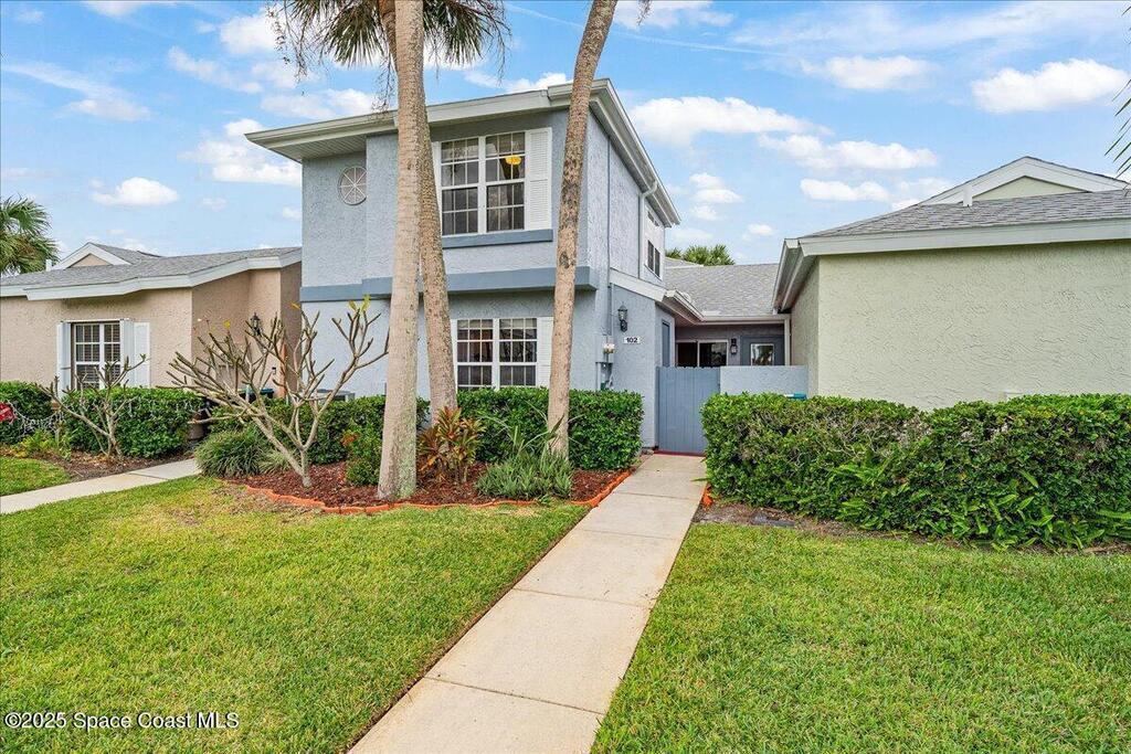 Tucked away in desirable Malibu Villas, this beautifully maintained 3 bedroom, 2 bathroom townhome offers comfort, convenience, and the Florida lifestyle. The downstairs primary suite provides everyday ease, while the warm wooden staircase adds charm and character.Enjoy peace of mind with a newer roof and gutters, HVAC replaced in 2021, and fresh exterior paint. A solar light fills the kitchen with abundant natural light, and an additional storage unit out front adds everyday practicality. Relax with peaceful lake views that create the perfect setting for morning coffee or quiet evenings at home.HOA fees include the heated community pool, pest control, ground and exterior maintenance, insurance, cable, and internet, making ownership truly low maintenance.Conveniently located near I95, shopping, and restaurants, with a short drive to all that Orlando has to offer. Spend weekends at the beach, watch Space Coast rocket launches, or simply enjoy the serenity of home.
