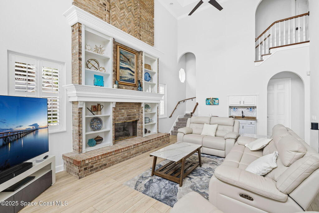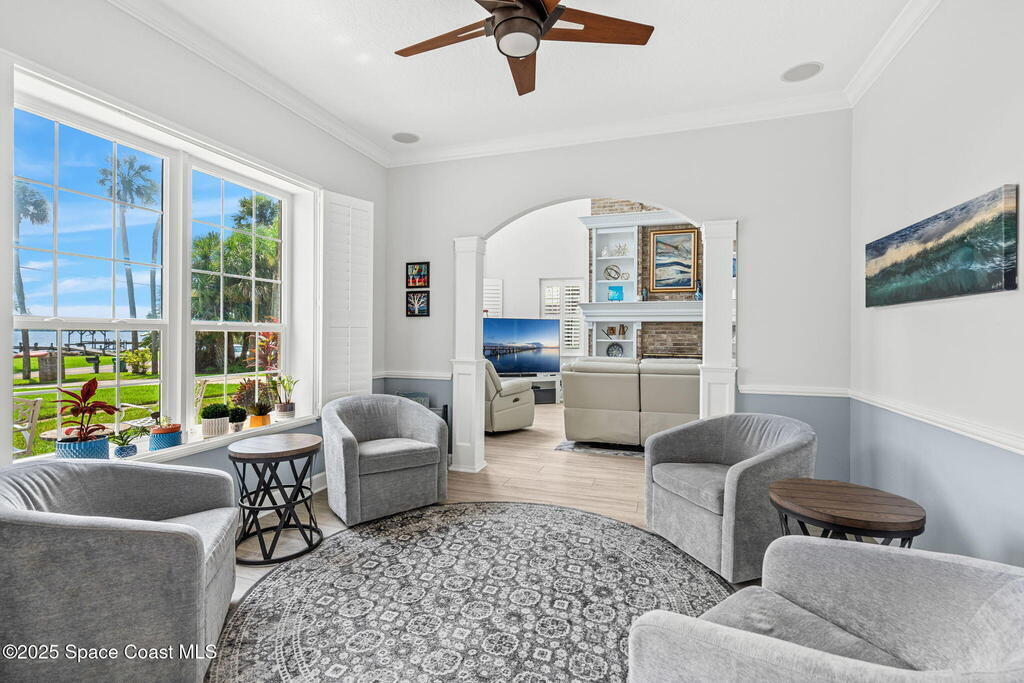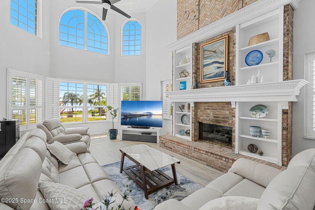 Wake up to endless river views, glowing sunrises, and rocket launches lighting up the sky. This exceptional riverfront home on iconic Rockledge Drive offers the kind of Florida lifestyle most people only dream about. Set on nearly half an acre with 104 feet of Indian River frontage, this property delivers privacy, space, and an unmatched connection to life on the water.From the moment you arrive, it's clear this home has been meticulously cared for. Inside, 3,820 square feet of light-filled living space unfolds with soaring 25-foot ceilings in the great room, multiple gathering spaces, and warm, timeless finishes throughout. Whether you're hosting holidays, quiet evenings by the fireplace, or entertaining guests, the layout flows beautifully while still offering room to retreat.