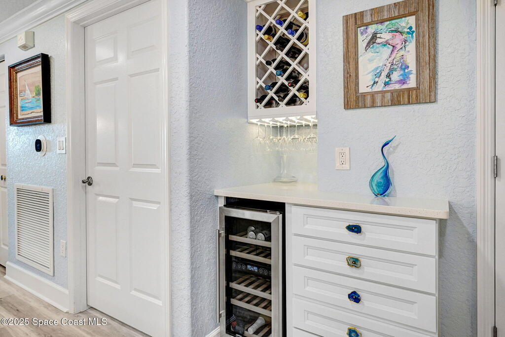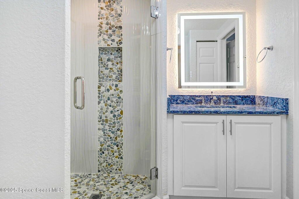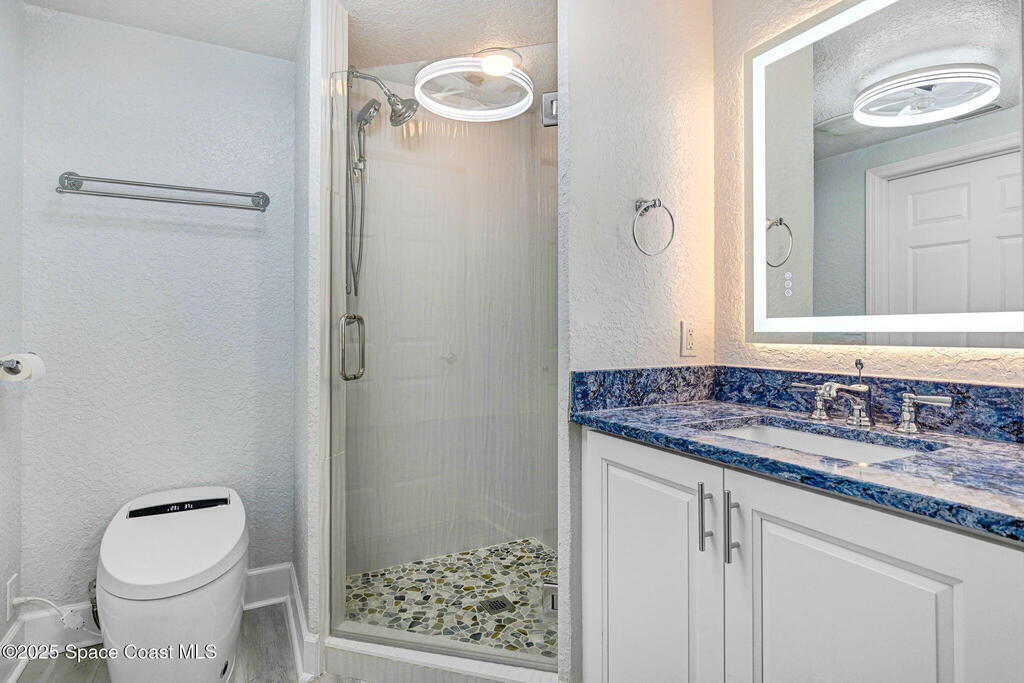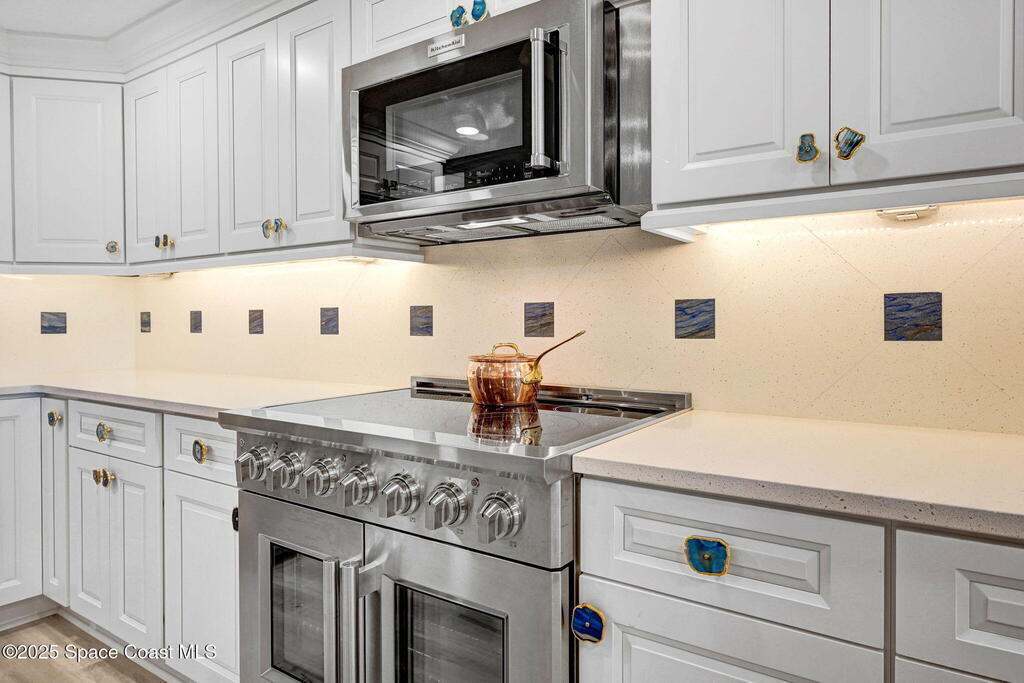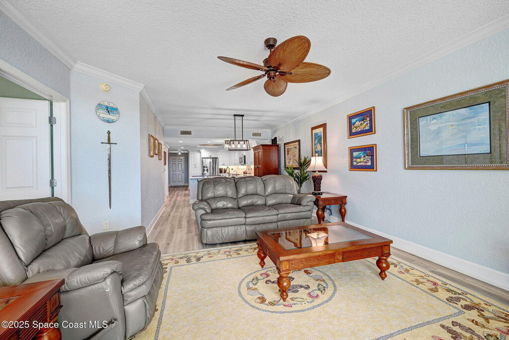 Luxury meets coastal living with a fully renovated oceanfront condo in the heart of Cape Canaveral. SE exposure delivers stunning sunrise and partial Atlantic views from a private balcony. The chef's kitchen features an imported FORNO Italian French-door oven, blue macauba quartzite counters, custom cabinetry, and premium hardware. Refined details include tray ceilings, statement fandoliers, and upgraded KOHLER fixtures. The primary suite offers impact-rated sliders to the balcony and two custom walk-in closets. The spa like bath includes dual macauba quartz vanities, illuminated fog-resistant mirrors, a high tech Japanese commode, walk in tiled shower with seating, and a KOHLER whirlpool soaking tub. Two additional bedrooms and an updated guest bath provide comfort for visitors. Includes oversized one-car garage parking. Seaport Oceanfront Condos offer amenities with pools, tennis, pickleball, direct beach access, and rocket launch views! 5 Mins to 528 and Jetty Park. Must see!