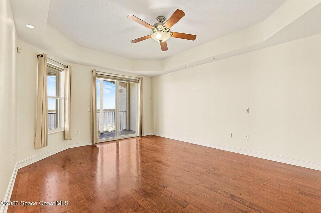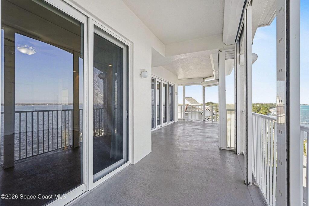 Rare opportunity to own a stunning corner penthouse condominium, one of the largest units offered in refined coastal luxury. Soaring 10' ceilings and glass doors fill the residence with natural light, while a wraparound 10th-floor balcony showcases breathtaking 180-degree views of sunrises and rocket launches over the Indian River. This thoughtfully designed home features four bedrooms, 3 baths, two private ensuites separate from the primary suite and main living areas, providing exceptional privacy and flexibility. The elegant kitchen is appointed with high-end wood cabinetry, granite countertops, walk-in-pantry, & island ideal for entertaining. Impact-rated windows and electric shutters provide full storm protection and peace of mind. An enclosed private 11/2-car garage offers ample storage. Just steps from charming Cocoa Village enjoy boutique shopping, dining, riverfront parks, and sidewalks, with convenient access to Pt Canaveral, pristine beaches, 45min. to Orlando Int'l airport