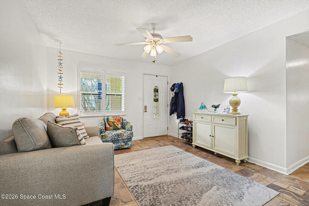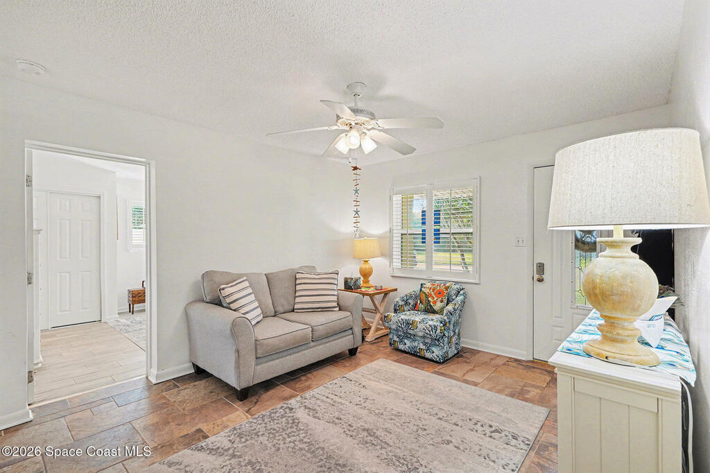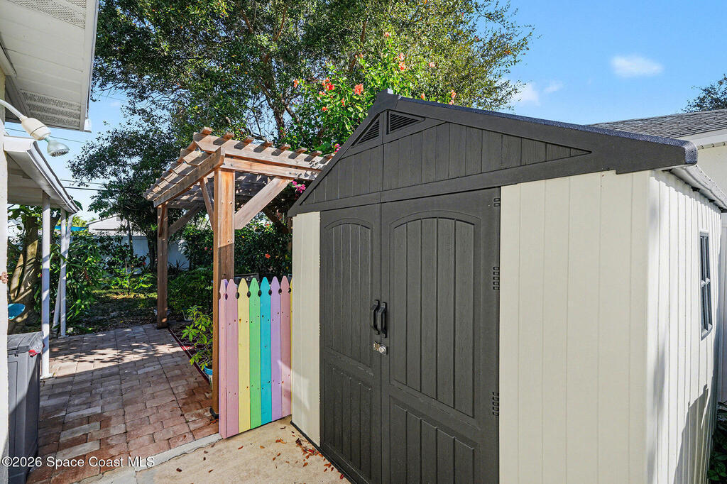 Just steps from the sand with beach access at the end of the street, this fully updated 4-bedroom, 2-bath Cape Canaveral home offers the best of coastal living with modern upgrades throughout. The full kitchen was remodeled one year ago with new cabinets, countertops, appliances, an induction range with air-fryer mode, and new flooring. Hurricane-impact windows and plantation shutters provide style and peace of mind, while the roof is approximately 6 years old. The primary suite was beautifully remodeled two years ago. Outdoor living shines with two new patios, outdoor shower, an arbor, updated vinyl fencing, and two sheds. The lush yard features fruit trees including fig, black sapote, banana, papaya, orange, cherry, and mango. Weekly rentals are permitted--making this an exceptional beachside retreat or investment opportunity.